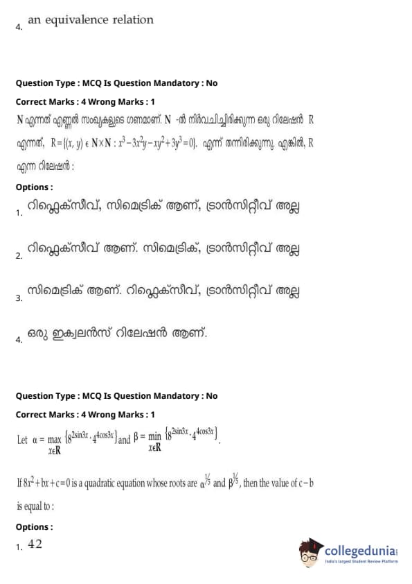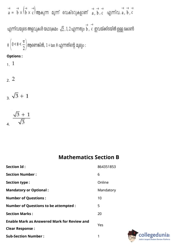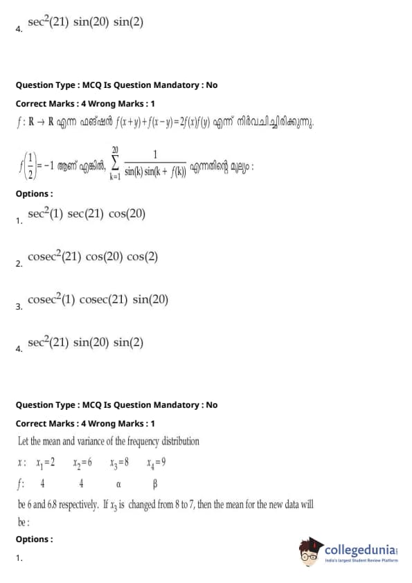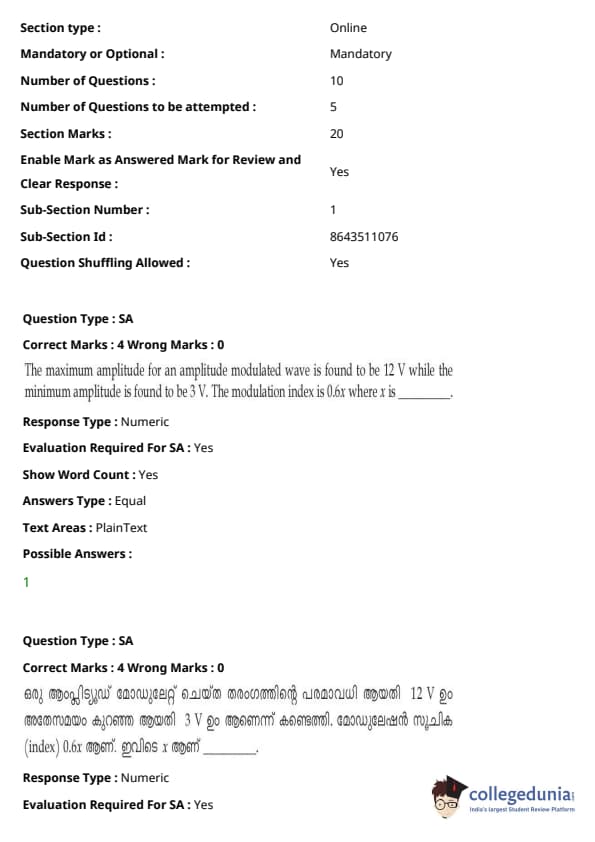 JEE Main 2021 B.E./ B.Tech ചോദ്യപേപ്പർ- ജൂലൈ 20, 2021- വിദഗ്ധ കോച്ചിംഗ് സ്ഥാപനങ്ങൾ ഉച്ചയ്ക്ക് മിതമായ ബുദ്ധിമുട്ടുള്ളതായി വിലയിരുത്തി. JEE Main മൂന്നാം സെഷന്റെ രണ്ടാമത്തെ പരീക്ഷയായിരുന്നു പരീക്ഷ.പരീക്ഷയുടെ മിതമായ ബുദ്ധിമുട്ടിന് ഒരു വലിയ സംഭാവന നൽകിയത് ഗണിതശാസ്ത്ര വിഭാഗമാണ്, അതിൽ തന്ത്രപരവും ദൈർഘ്യമേറിയതുമായ ചോദ്യങ്ങൾ, പ്രത്യേകിച്ച് പ്രോബബിലിറ്റി, ഡിഫറൻഷ്യൽ കാൽക്കുലസ് എന്നിവയിൽ നിന്നുള്ളതായിരുന്നു.ബുദ്ധിമുട്ടിന്റെ കാര്യത്തിൽ രണ്ടാമത്തേത് മെക്കാനിക്സിൽ നിന്നും മോഡേൺ ഫിസിക്സിൽ നിന്നുമുള്ള ഗണ്യമായ അളവിലുള്ള ചോദ്യങ്ങൾ ഉൾക്കൊള്ളുന്ന ഫിസിക്സ് വിഭാഗമായിരുന്നു.സങ്കീർണ്ണതയും സിദ്ധാന്തം അടിസ്ഥാനമാക്കിയുള്ള ചോദ്യങ്ങളും കണക്കിലെടുത്ത് കെമിസ്ട്രി വിഭാഗത്തിന്റെ ബുദ്ധിമുട്ട് നില ഭൗതികശാസ്ത്ര വിഭാഗത്തിന് തുല്യമായിരുന്നു;കെമിസ്ട്രി വിഭാഗത്തിൽ ഏറ്റവും വലിയ സംഭാവന നൽകിയത് ഓർഗാനിക് കെമിസ്ട്രിയാണ് (I, II). JEE Main 2022-ന് തയ്യാറെടുക്കുന്ന ഉദ്യോഗാർത്ഥികൾ, 2021 ജൂലൈ 20-ന് ഉച്ചകഴിഞ്ഞുള്ള സെഷനിലെ ഉത്തര കീ PDF-കൾ സഹിതം ചോദ്യപേപ്പറുകൾ ചുവടെ നിന്ന് ഡൗൺലോഡ് ചെയ്യാം: