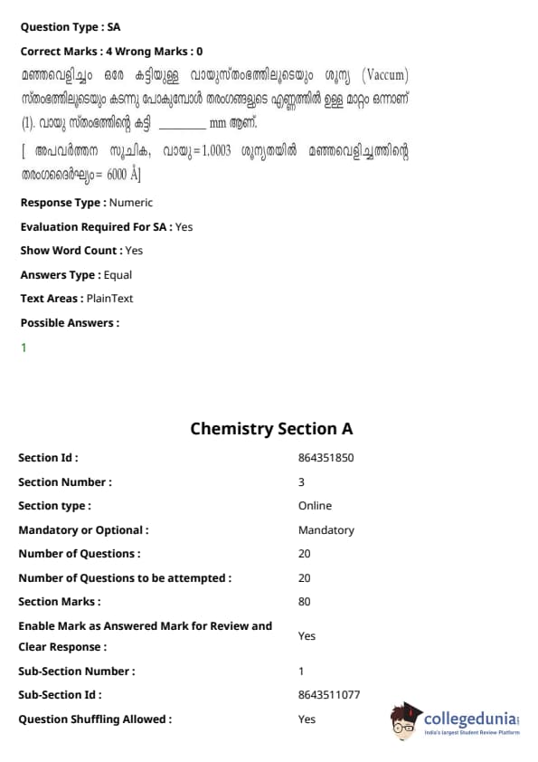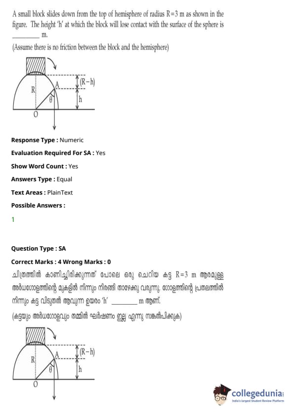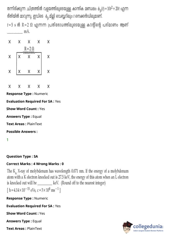 | JEE Main 2021 ചോദ്യപേപ്പർ | JEE Main 2021 ഉത്തരസൂചിക |