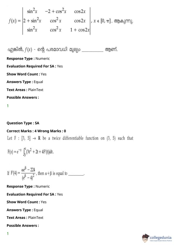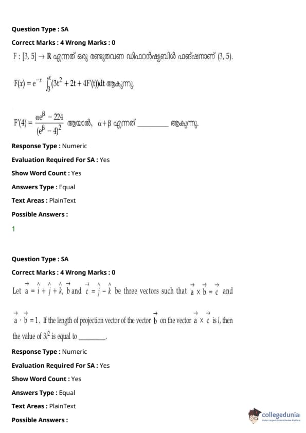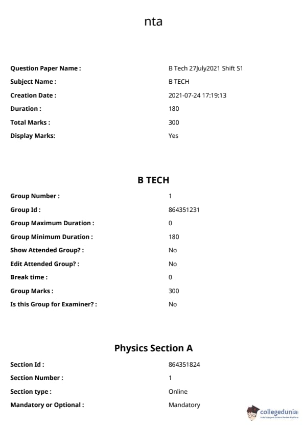 JEE Main B.E./ B.Tech ചോദ്യപേപ്പർ- ജൂലൈ 27, 2021 ഉച്ചകഴിഞ്ഞ്