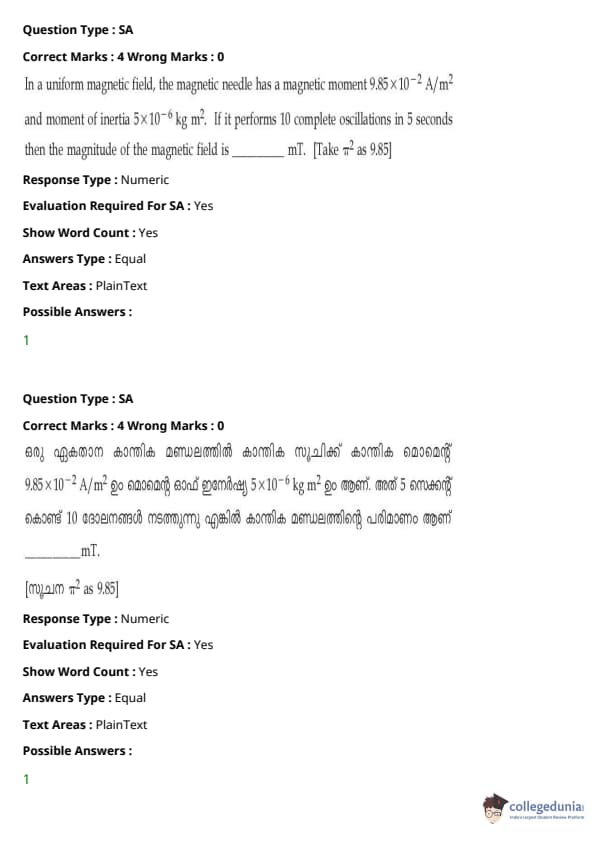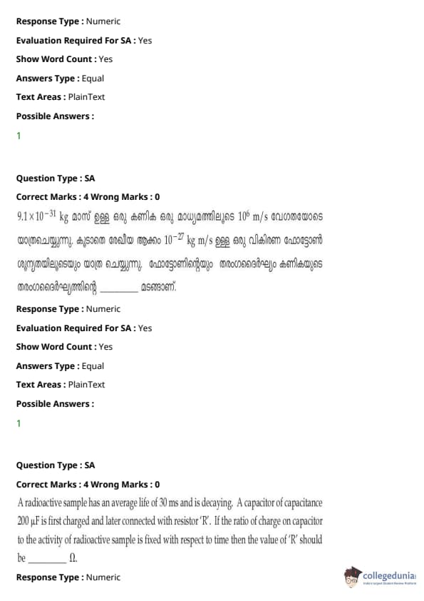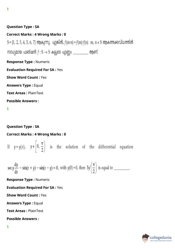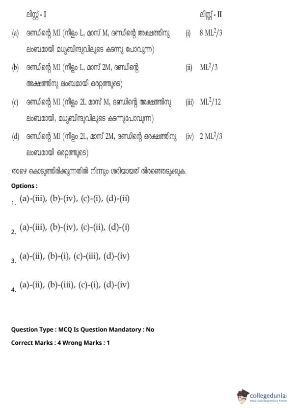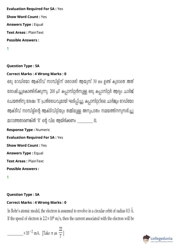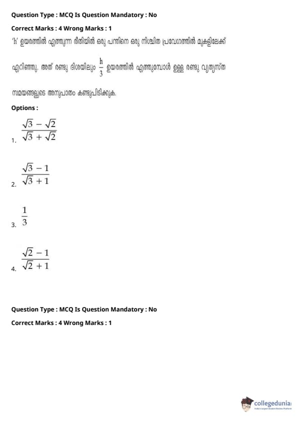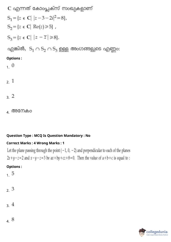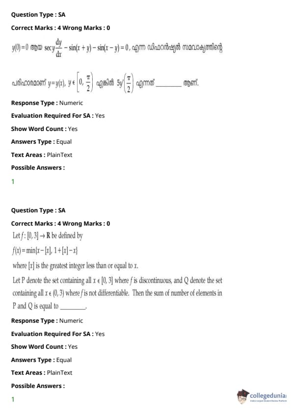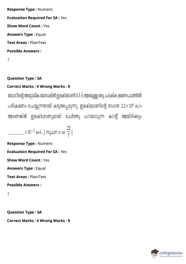 | JEE Main 2020 ചോദ്യപേപ്പർ | JEE Main 2019 ചോദ്യപേപ്പർ | JEE Main 2018 ചോദ്യപേപ്പർ |