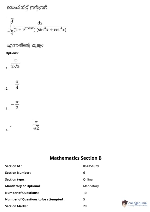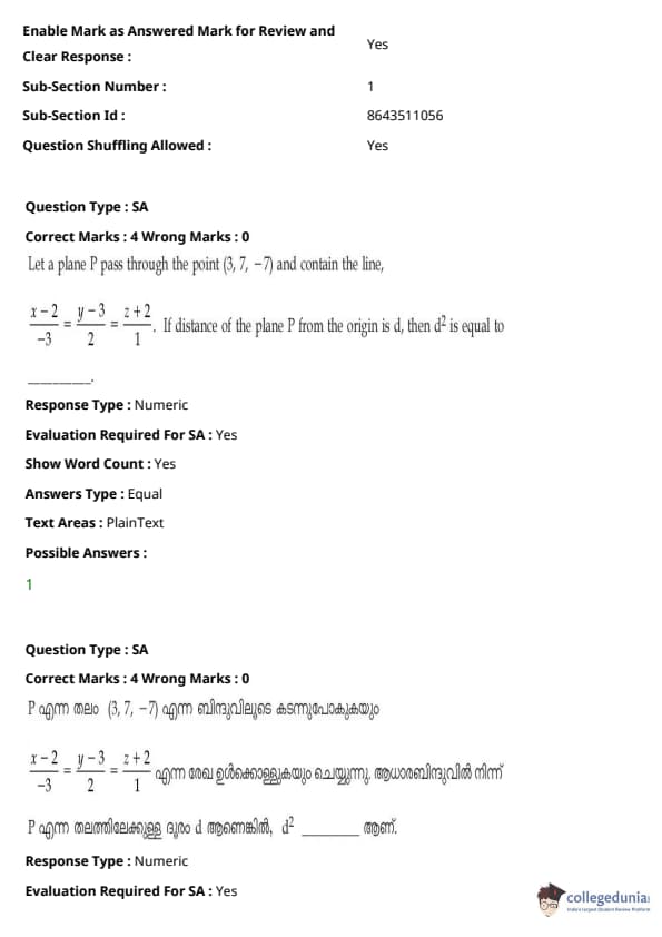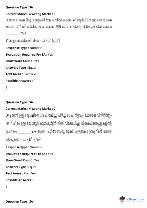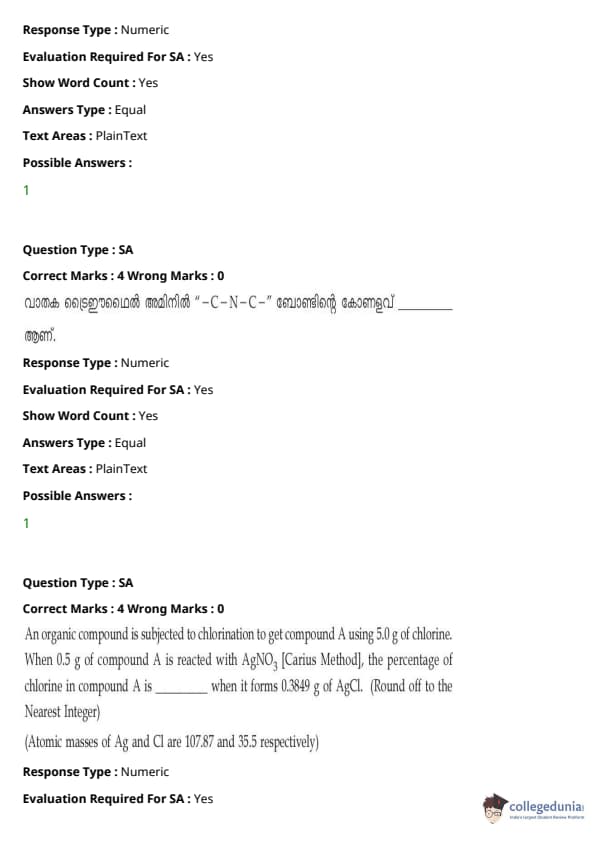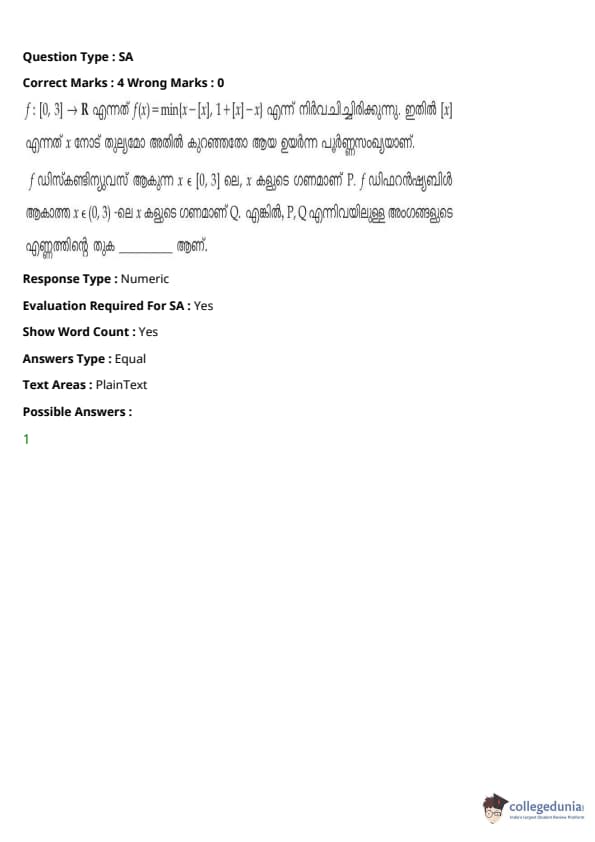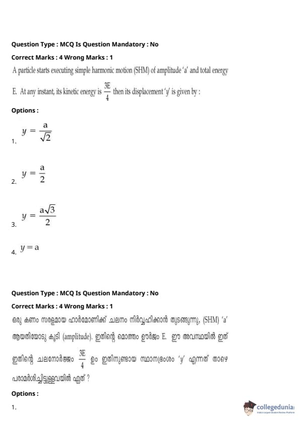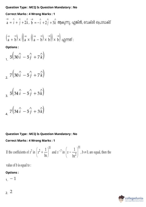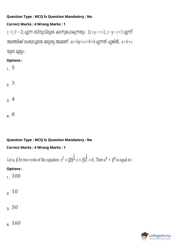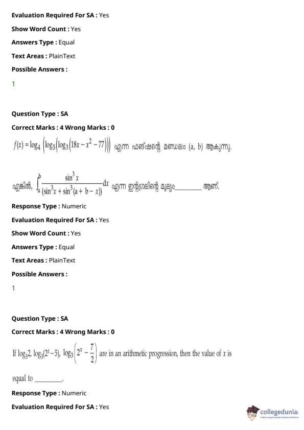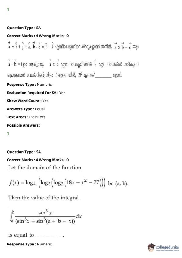 | JEE Main 2020 ചോദ്യപേപ്പർ | JEE Main 2019 ചോദ്യപേപ്പർ | JEE Main 2018 ചോദ്യപേപ്പർ |