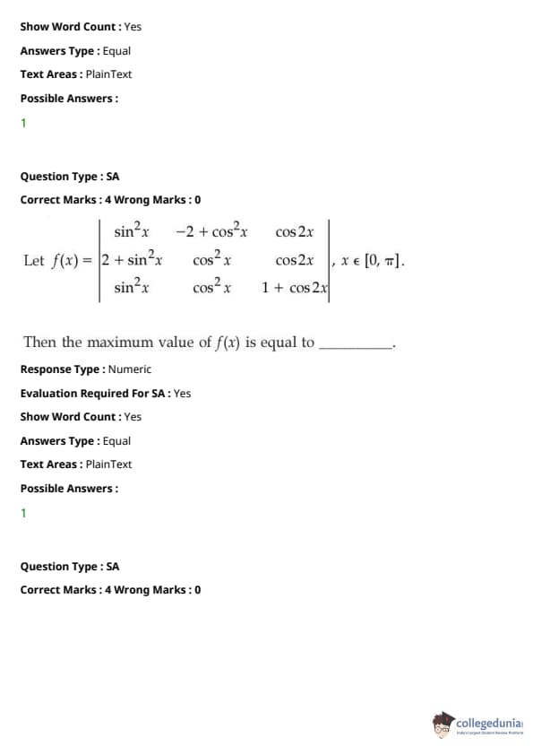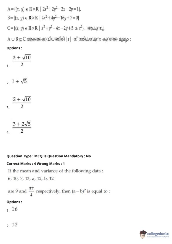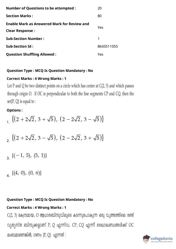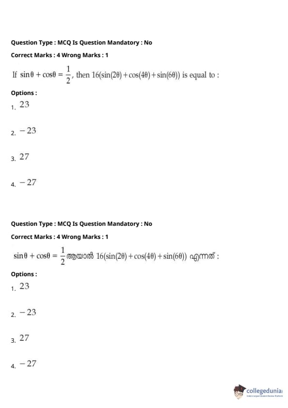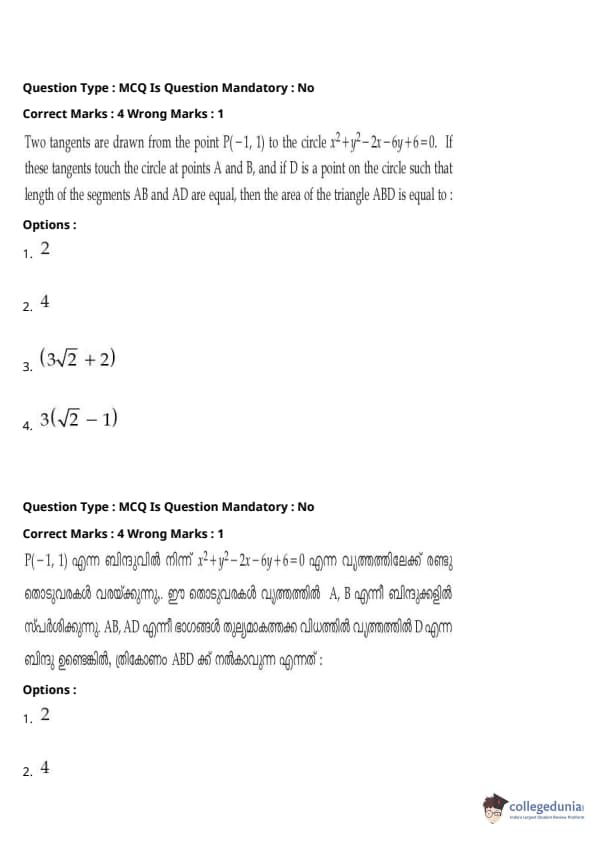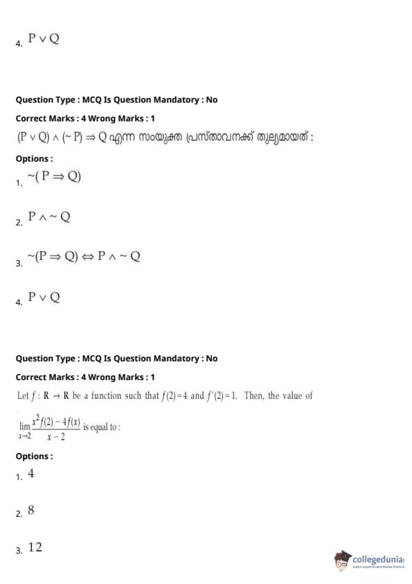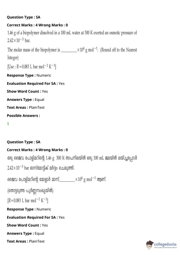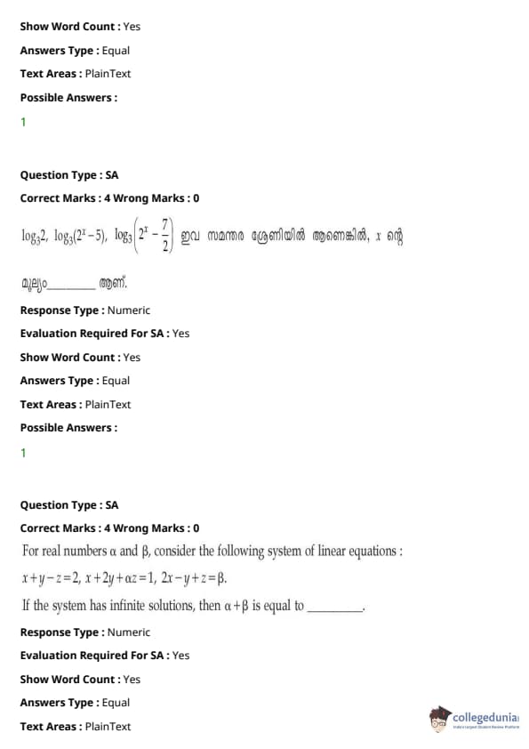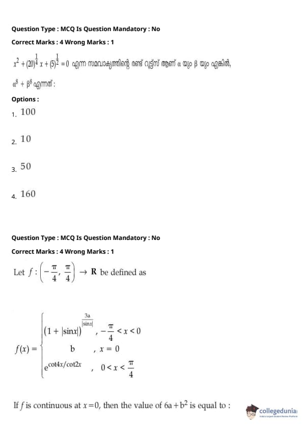| JEE Main 2020 ചോദ്യപേപ്പർ | JEE Main 2019 ചോദ്യപേപ്പർ | JEE Main 2018 ചോദ്യപേപ്പർ |