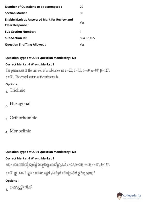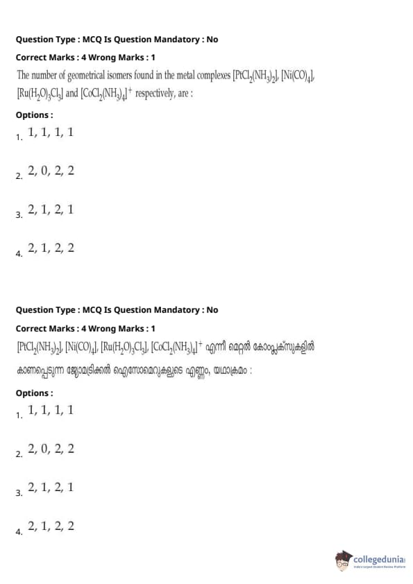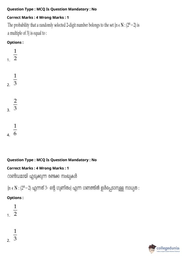 | JEE Main ഫിസിക്സ് ചോദ്യപേപ്പർ | JEE Main മാത്സ് ചോദ്യപേപ്പർ | JEE Main കെമിസ്ട്രി ചോദ്യപേപ്പർ |