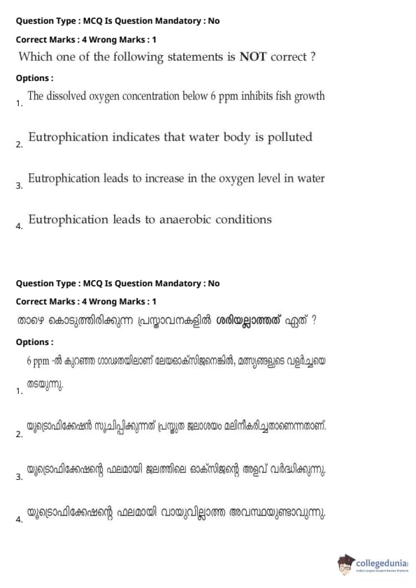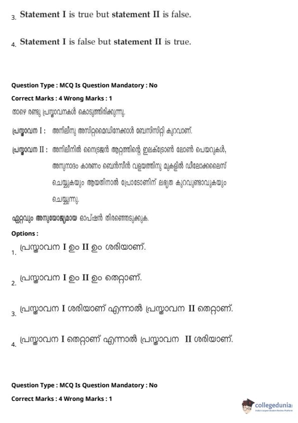 JEE Main 2021 B.E./ B.Tech ചോദ്യപേപ്പർ- ജൂലൈ 27, 2021- വിദഗ്ധ കോച്ചിംഗ് സ്ഥാപനങ്ങൾ ഉച്ചയ്ക്ക് മിതമായ ബുദ്ധിമുട്ടുള്ളതായി വിലയിരുത്തി. JEE Main മൂന്നാം സെഷന്റെ രണ്ടാമത്തെ പരീക്ഷയായിരുന്നു പരീക്ഷ.പരീക്ഷയുടെ മിതമായ ബുദ്ധിമുട്ടിന് ഒരു വലിയ സംഭാവന നൽകിയത് ഗണിതശാസ്ത്ര വിഭാഗമാണ്, അതിൽ തന്ത്രപരവും ദൈർഘ്യമേറിയതുമായ ചോദ്യങ്ങൾ, പ്രത്യേകിച്ച് പ്രോബബിലിറ്റി, ഡിഫറൻഷ്യൽ കാൽക്കുലസ് എന്നിവയിൽ നിന്നുള്ളതായിരുന്നു.ബുദ്ധിമുട്ടിന്റെ കാര്യത്തിൽ രണ്ടാമത്തേത് മെക്കാനിക്സിൽ നിന്നും മോഡേൺ ഫിസിക്സിൽ നിന്നുമുള്ള ഗണ്യമായ അളവിലുള്ള ചോദ്യങ്ങൾ ഉൾക്കൊള്ളുന്ന ഫിസിക്സ് വിഭാഗമായിരുന്നു.സങ്കീർണ്ണതയും സിദ്ധാന്തം അടിസ്ഥാനമാക്കിയുള്ള ചോദ്യങ്ങളും കണക്കിലെടുത്ത് കെമിസ്ട്രി വിഭാഗത്തിന്റെ ബുദ്ധിമുട്ട് നില ഭൗതികശാസ്ത്ര വിഭാഗത്തിന് തുല്യമായിരുന്നു;കെമിസ്ട്രി വിഭാഗത്തിൽ ഏറ്റവും വലിയ സംഭാവന നൽകിയത് ഓർഗാനിക് കെമിസ്ട്രിയാണ് (I, II). JEE Main 2022-ന് തയ്യാറെടുക്കുന്ന ഉദ്യോഗാർത്ഥികൾ, 2021 ജൂലൈ 20-ന് ഉച്ചകഴിഞ്ഞുള്ള സെഷനിലെ ഉത്തര കീ PDF-കൾ സഹിതം ചോദ്യപേപ്പറുകൾ ചുവടെ നിന്ന് ഡൗൺലോഡ് ചെയ്യാം: