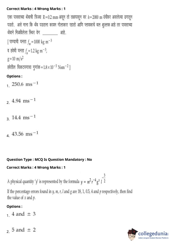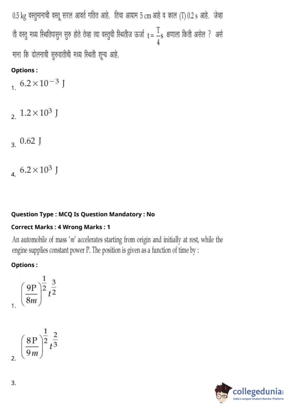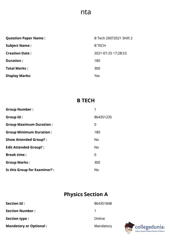 JEE Main B.E./ B.Tech प्रश्नपत्रिका- 20 जुलै 2021 दुपारी