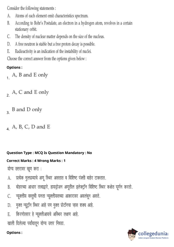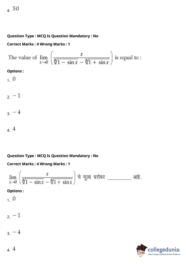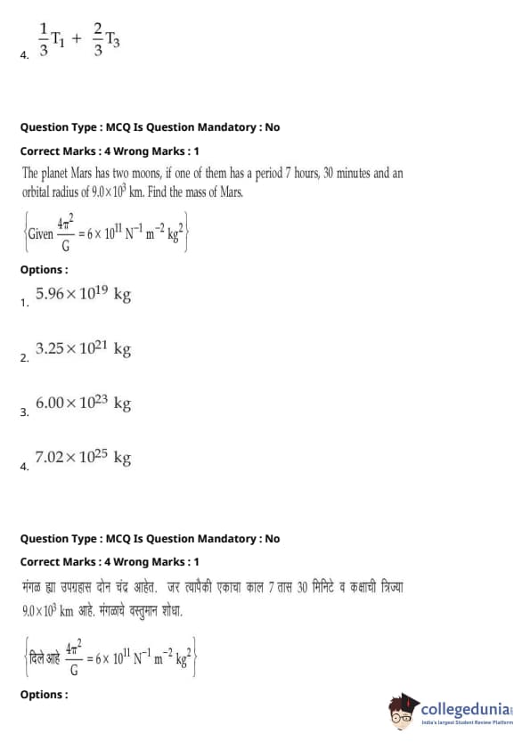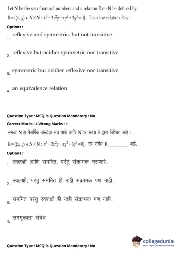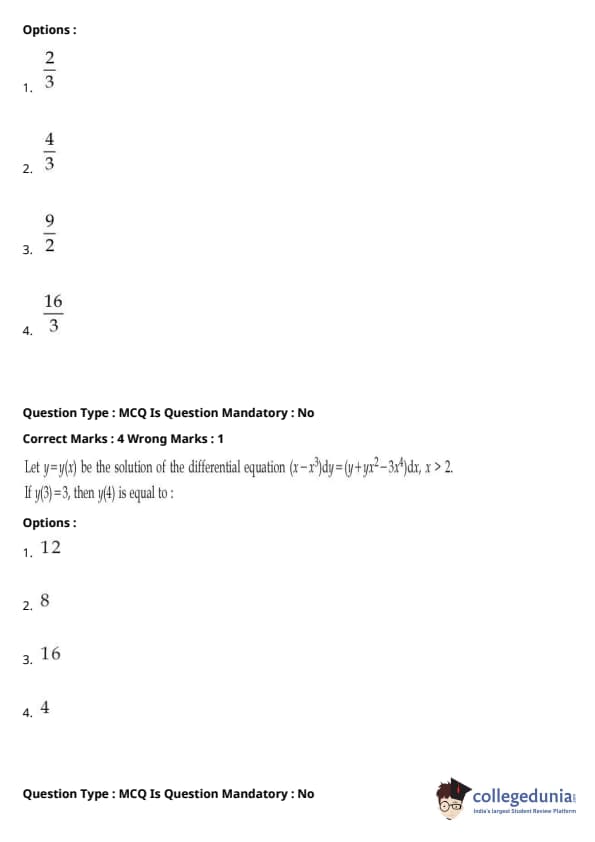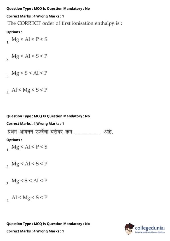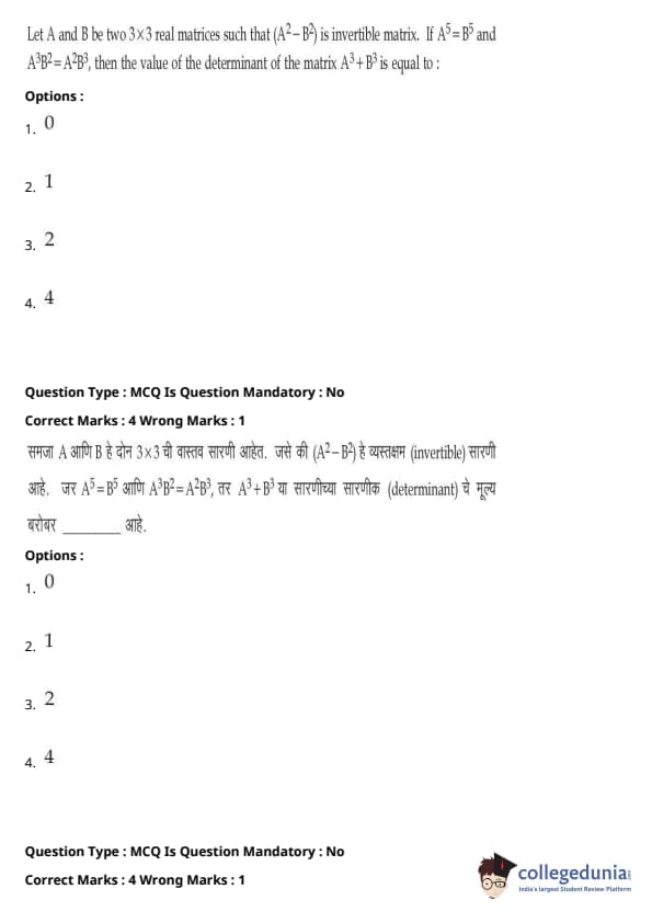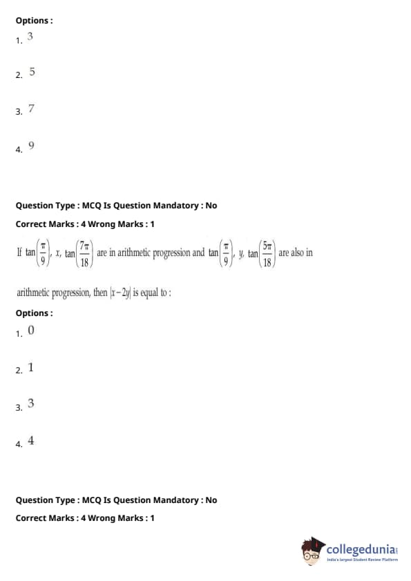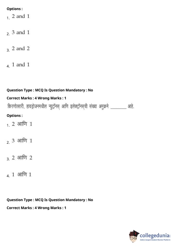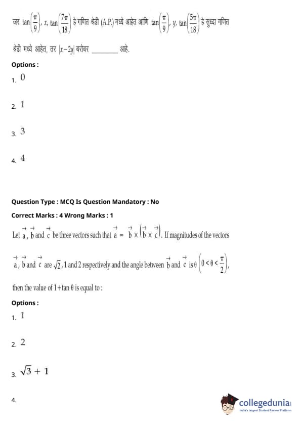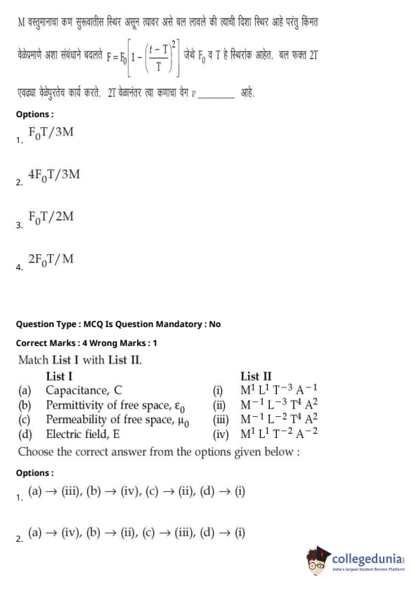 | JEE Main भौतिकशास्त्र प्रश्नपत्रिका | JEE Main गणित प्रश्नपत्रिका | JEE Main रसायनशास्त्र प्रश्नपत्रिका |