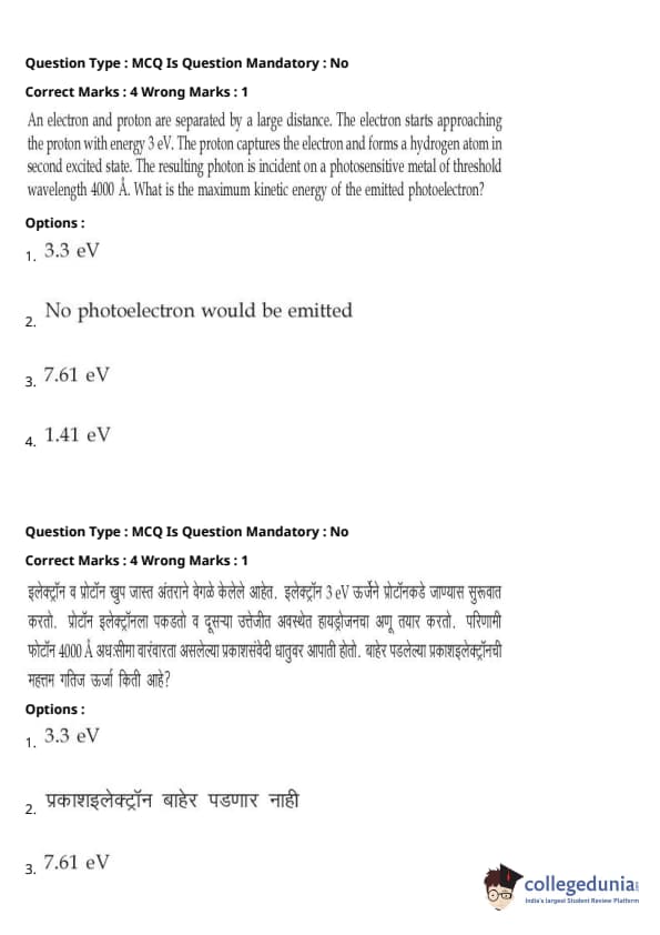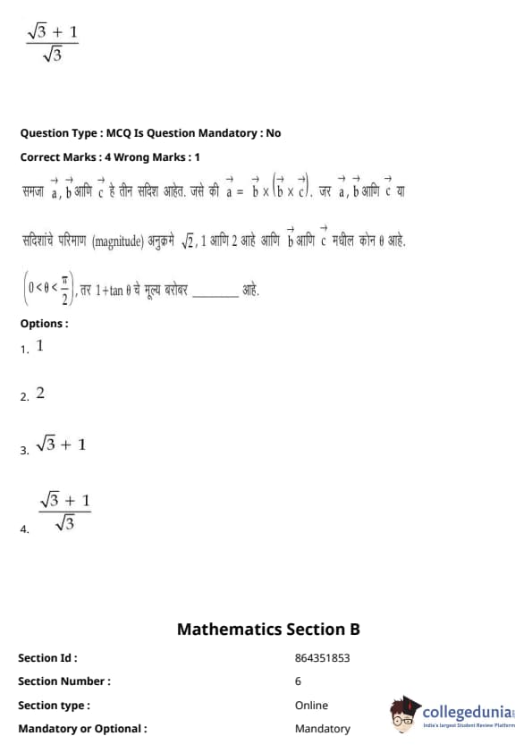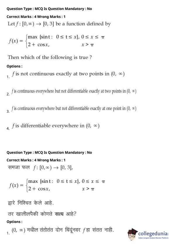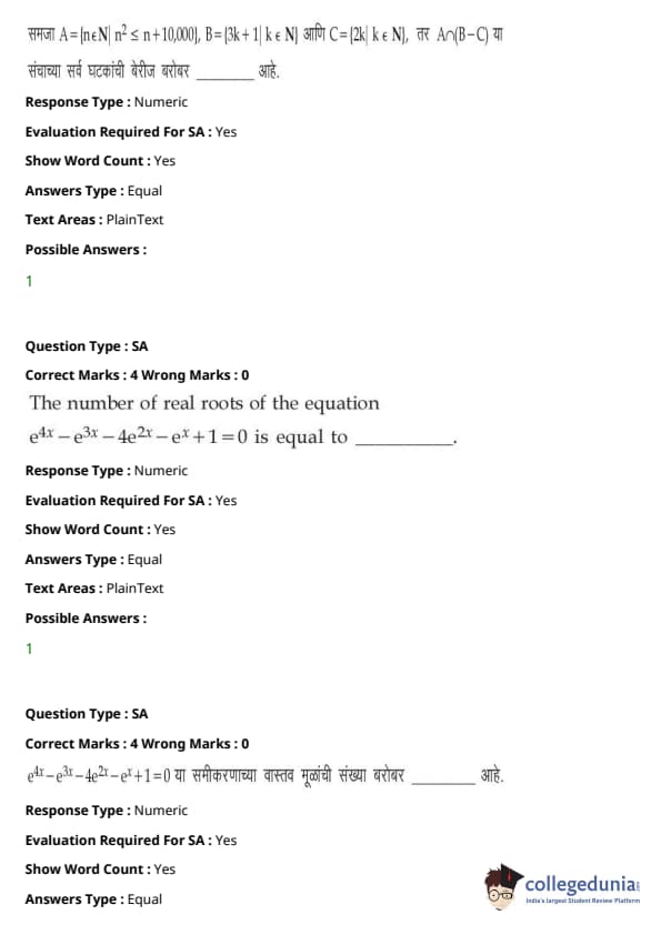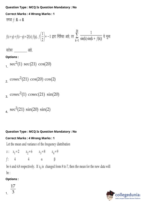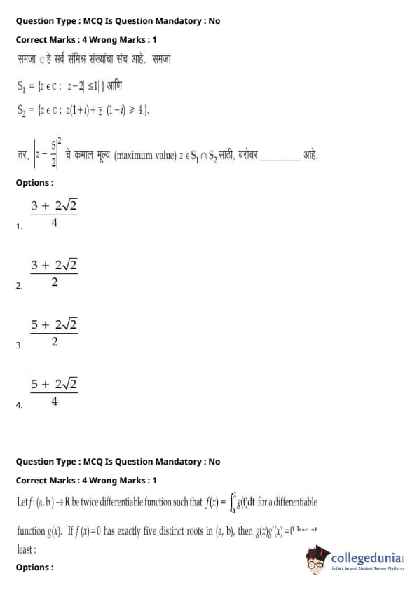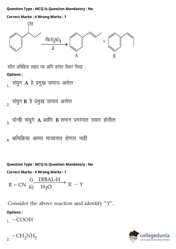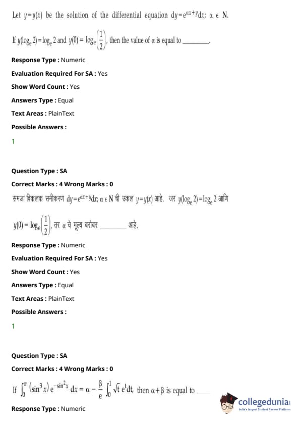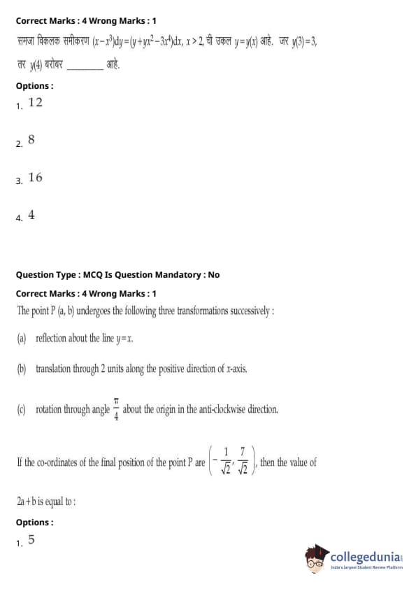 JEE Main 2021 B.E./ B.Tech प्रश्नपत्रिका- 20 जुलै, 2021- दुपारची वेळ तज्ज्ञ कोचिंग संस्थांनी मध्यम कठीण म्हणून रेट केली होती ही परीक्षा JEE Main तिसर्या सत्राची दुसरी परीक्षा होती.परीक्षेच्या मध्यम अडचणीत एक मोठा योगदान देणारा घटक गणित विभाग होता, ज्यामध्ये अवघड आणि लांब प्रश्न होते, विशेषत: संभाव्यता आणि भिन्न कॅल्क्युलसचे.कठिणतेच्या दृष्टीने दुसरा भौतिकशास्त्र विभाग होता, ज्यामध्ये यांत्रिकी आणि आधुनिक भौतिकशास्त्रातील महत्त्वपूर्ण प्रश्न होते.रसायनशास्त्र विभागाची काठीण्य पातळी जटिलता आणि सिद्धांत-आधारित प्रश्नांच्या दृष्टीने भौतिकशास्त्र विभागाच्या बरोबरीची होती;रसायनशास्त्र विभागात सर्वात मोठे योगदान ऑरगॅनिक केमिस्ट्री (I आणि II) होते. JEE Main 2022 ची तयारी करणारे उमेदवार, 20 जुलै 2021 च्या दुपारच्या सत्रासाठी उत्तर की PDF सह प्रश्नपत्रिका खालील वरून डाउनलोड करू शकतात: