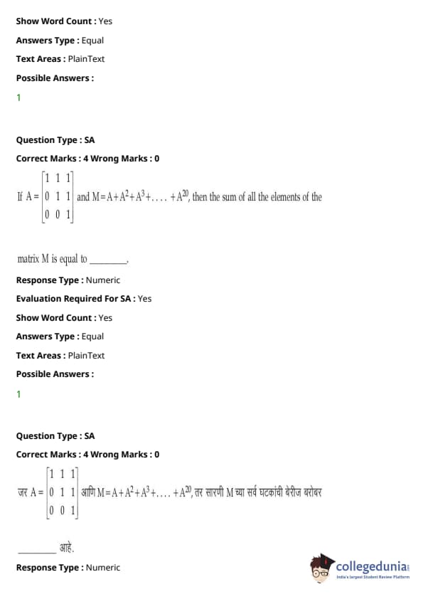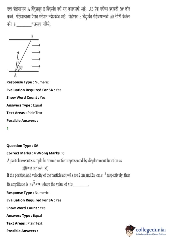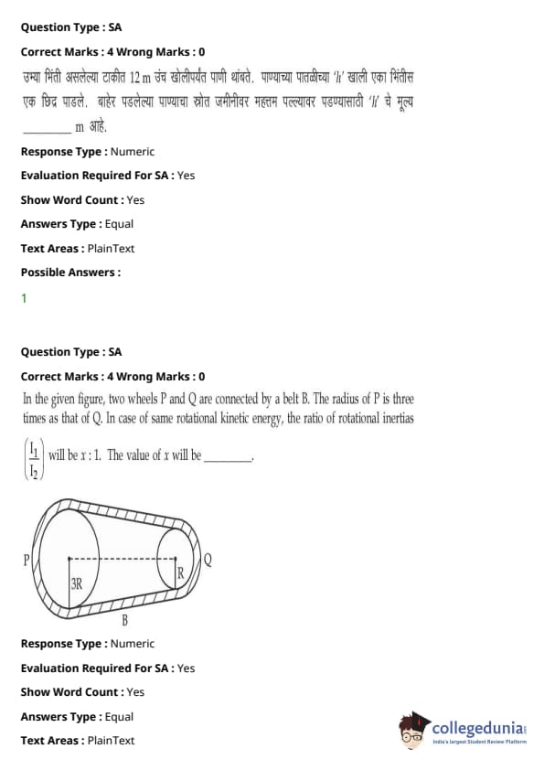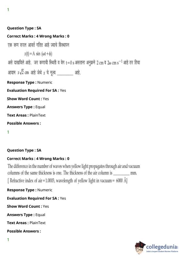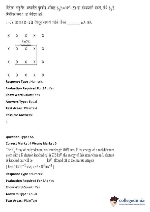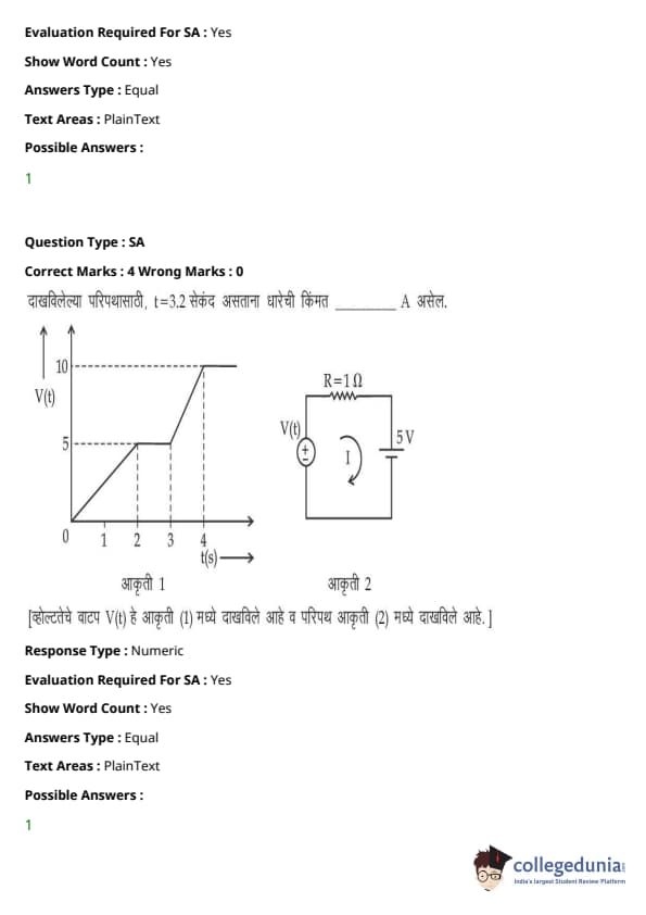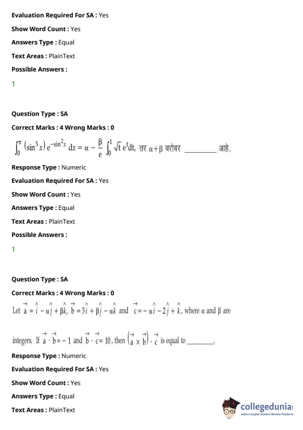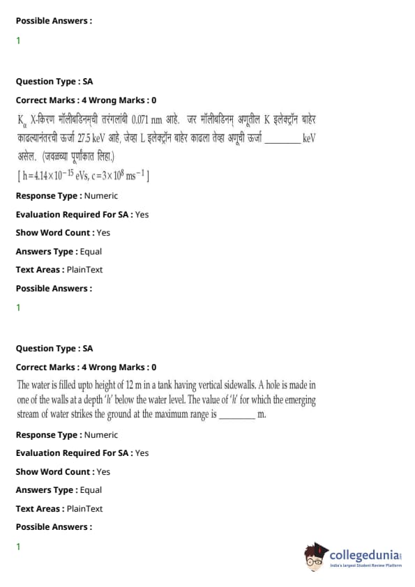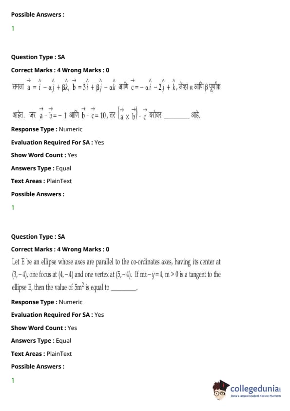 उमेदवारांनी शक्य तितक्या मागील वर्षाच्या प्रश्नपत्रिकांचा प्रयत्न करून सराव करावा.कॉलेजदुनियाने JEE Main बी.ई/बी.टेक प्रश्नपत्रिका खालील उत्तर की पीडीएफसह लिंक प्रदान केल्या आहेत: