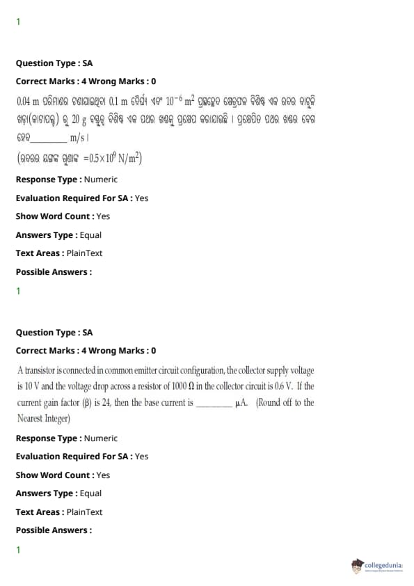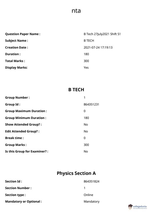 JEE Main B.E./ B.Tech ପ୍ରଶ୍ନ ପେପର- ଜୁଲାଇ 27, 2021 ସକାଳେ |