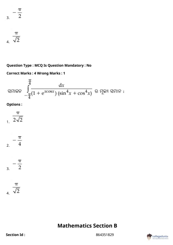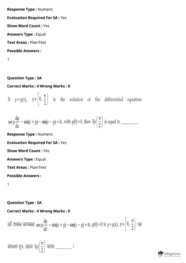 ପ୍ରାର୍ଥୀମାନେ ପୂର୍ବ ବର୍ଷର ପ୍ରଶ୍ନପତ୍ର ଯଥାସମ୍ଭବ ଚେଷ୍ଟା ଏବଂ ଅଭ୍ୟାସ କରିବା ଉଚିତ୍ |JEE Main BE / B ଟେକ୍ ପ୍ରଶ୍ନ ପେପର ପାଇଁ କଲେଗେଡୁନିଆ ଲିଙ୍କ୍ ପ୍ରଦାନ କରିଛି: