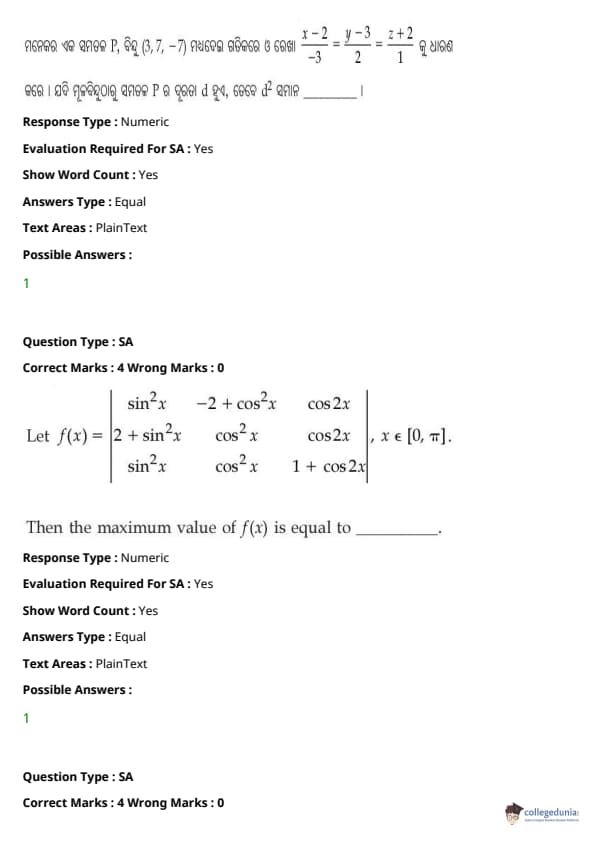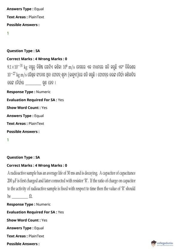 | JEE Main 2021 ପ୍ରଶ୍ନପତ୍ର | | JEE Main 2021 ଉତ୍ତର ଚାବି | |