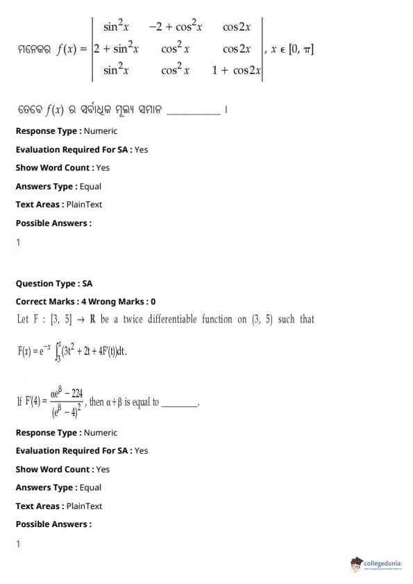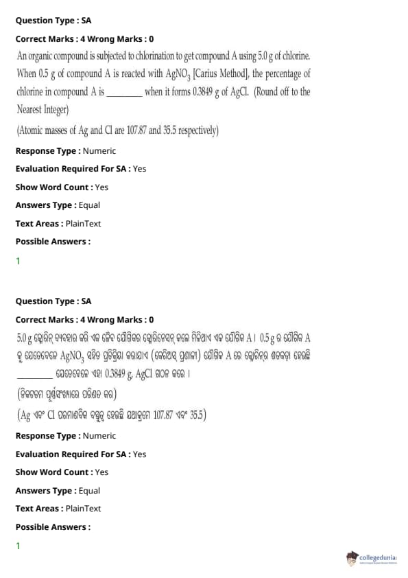 JEE Main 2021 B.E./ B.Tech ପ୍ରଶ୍ନ ପେପର- ଜୁଲାଇ 27, 2021- ବିଶେଷଜ୍ଞ କୋଚିଂ ପ୍ରତିଷ୍ଠାନଗୁଡିକ ଦ୍ ମଧ୍ୟାହ୍ନ ପରେ ମଧ୍ୟମ କଷ୍ଟସାଧ୍ୟ ବୋଲି ମାନ୍ୟତା ପାଇଲା |ଏହି ପରୀକ୍ଷାଟି JEE Main 3rd ୟ ଅଧିବେଶନର ଦ୍ୱିତୀୟ ପରୀକ୍ଷା ଥିଲା |ପରୀକ୍ଷାର ମଧ୍ୟମ ଅସୁବିଧା ପାଇଁ ଏକ ବଡ଼ ଅବଦାନ କାରକ ଥିଲା ଗଣିତ ବିଭାଗ, ଯାହା ଚତୁର ଏବଂ ଲମ୍ବା ପ୍ରଶ୍ନଗୁଡିକ ବିଶେଷତ Prob ସମ୍ଭାବ୍ୟତା ଏବଂ ଡିଫେରିଏନାଲ୍ କାଲକୁଲସ୍ ରୁ ଦର୍ଶାଯାଇଥିଲା |ଅସୁବିଧା ଦୃଷ୍ଟିରୁ ଦ୍ୱିତୀୟଟି ହେଉଛି ଫିଜିକ୍ସ ବିଭାଗ, ମେକାନିକ୍ସ ଏବଂ ଆଧୁନିକ ପଦାର୍ଥ ବିଜ୍ଞାନରୁ ବହୁ ପରିମାଣର ପ୍ରଶ୍ନ ଧାରଣ କରିଥିଲା |ରସାୟନ ବିଜ୍ଞାନ ବିଭାଗର ଅସୁବିଧା ସ୍ତର ଜଟିଳତା ଏବଂ ତତ୍ତ୍ based ଭିତ୍ତିକ ପ୍ରଶ୍ନ ଦୃଷ୍ଟିରୁ ପଦାର୍ଥ ବିଜ୍ଞାନ ବିଭାଗ ସହିତ ସମାନ ଥିଲା;ରସାୟନ ବିଭାଗର ସବୁଠାରୁ ବଡ ଯୋଗଦାନକାରୀ ହେଉଛି ଜ Organ ବ ରସାୟନ (I ଏବଂ II) | JEE Main 2022 ପାଇଁ ପ୍ରାର୍ଥୀମାନେ ପ୍ରସ୍ତୁତ ହେଉଛନ୍ତି |, ଜୁଲାଇ 27, 2021, ମଧ୍ୟାହ୍ନ ଭୋଜନ ଅଧିବେଶନ ପାଇଁ ଉତ୍ତର କୀ PDF ସହିତ ପ୍ରଶ୍ନପତ୍ରଗୁଡ଼ିକୁ ଡାଉନଲୋଡ୍ କରିପାରିବେ: