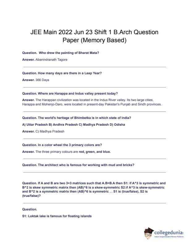 | B.Arch | JEE Main 2021 B.Arch Question Paper Feb 23 Shift 2 |