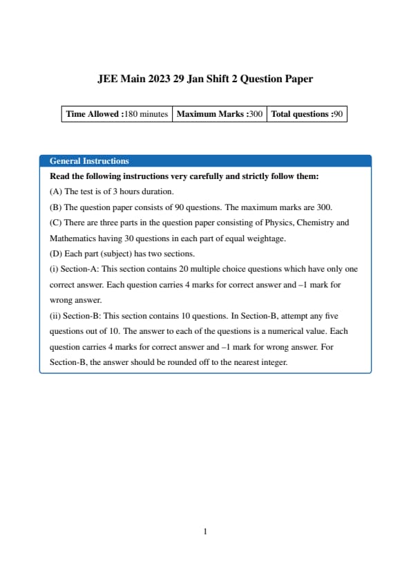 JEE Main 2023 Question Paper Jan 29 Shift 2- Download PDF