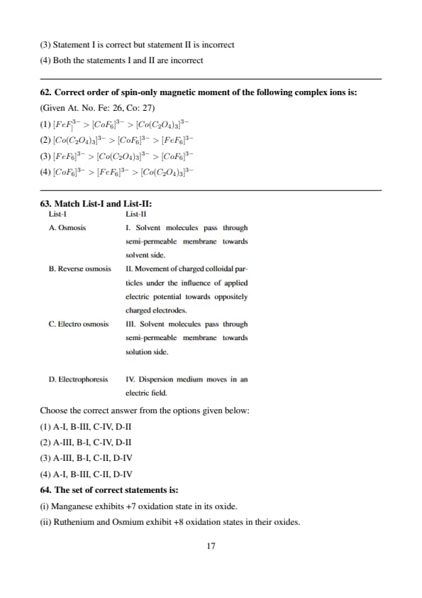 Correct order of spin-only magnetic moment of the following complex ions is: