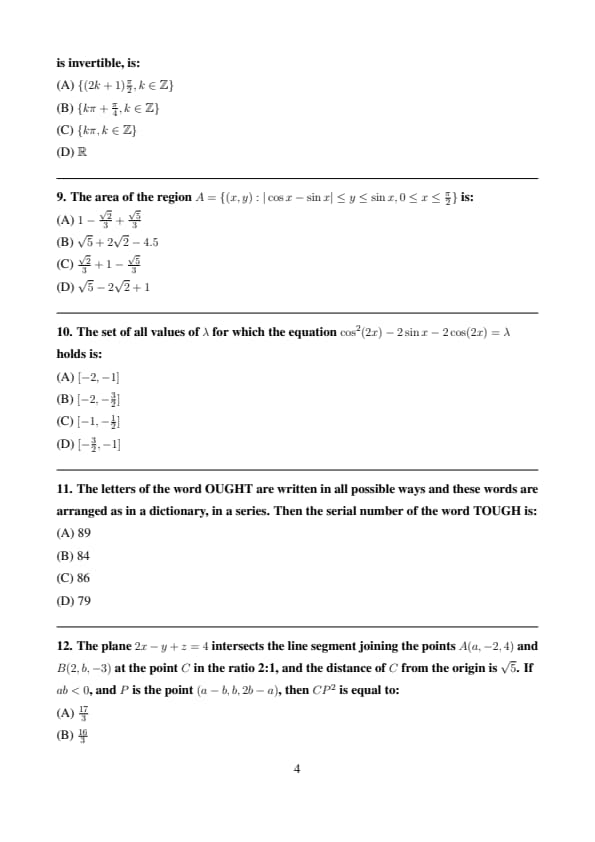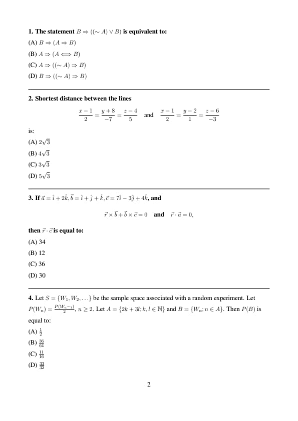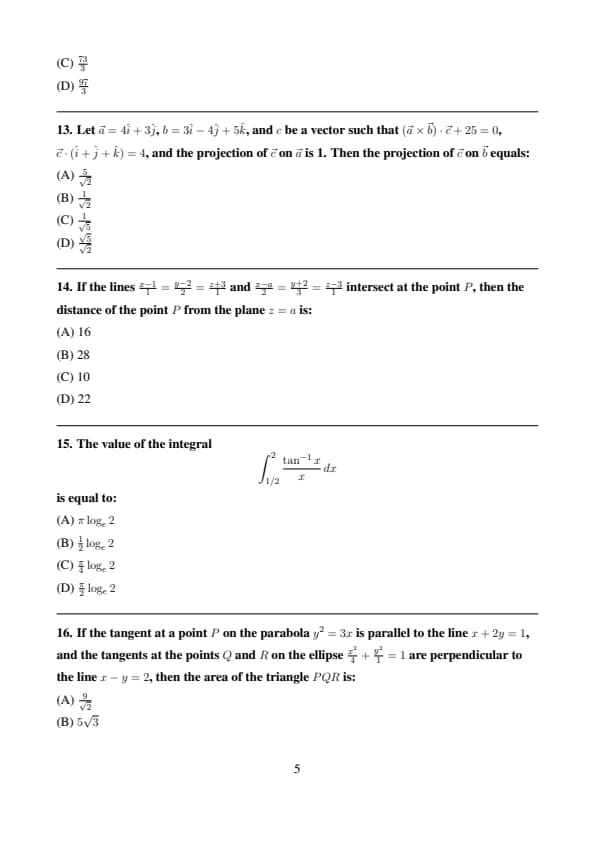 \[ Projection = \frac{25}{\sqrt{50}} = \frac{5}{\sqrt{2}}. \] Quick Tip: To solve vector problems, combine dot and cross product conditions systematically and solve equations step-by-step.