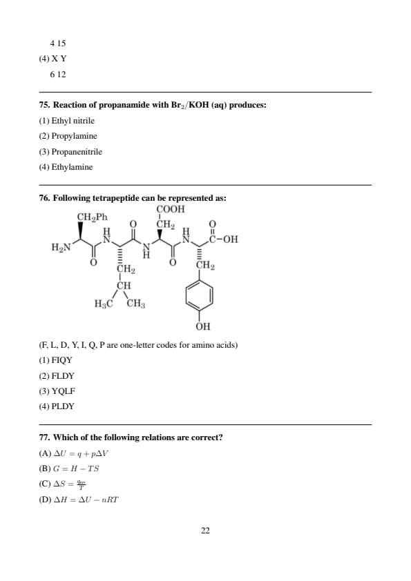 Reaction of propanamide with \(Br_2/KOH\) (aq) produces: