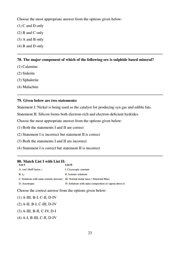 In the light of the above statements, choose the most appropriate answer from the options given below
