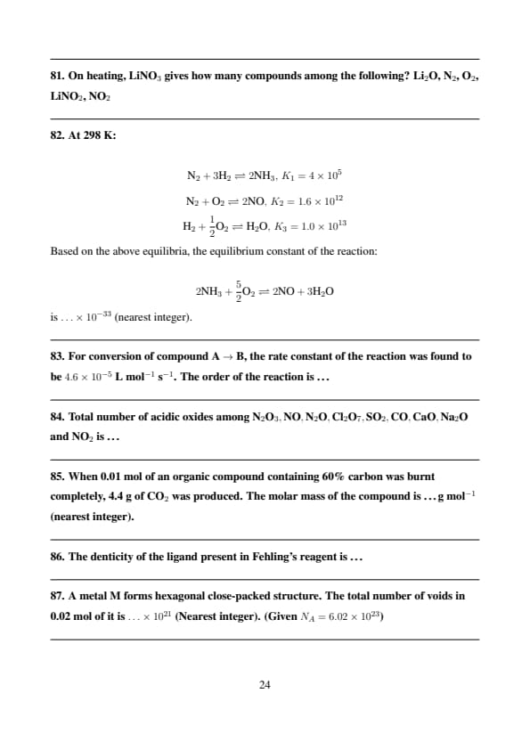 On heating, LiNO\(_3\) gives how many compounds among the following? Li\(_2\)O, N\(_2\), O\(_2\), LiNO\(_2\), NO\(_2\)