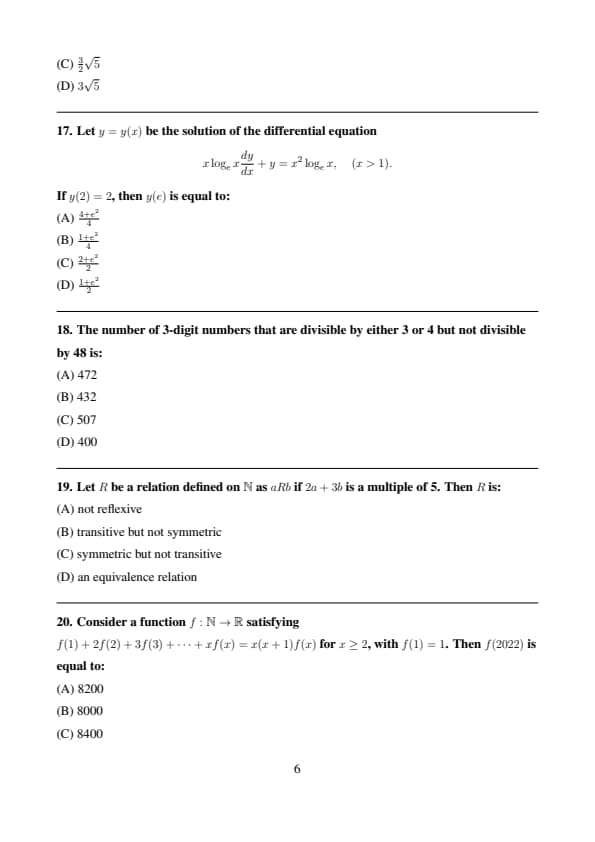 Let \( y = y(x) \) be the solution of the differential equation \[ x \log_e x \frac{dy}{dx} + y = x^2 \log_e x, \quad (x > 1). \]