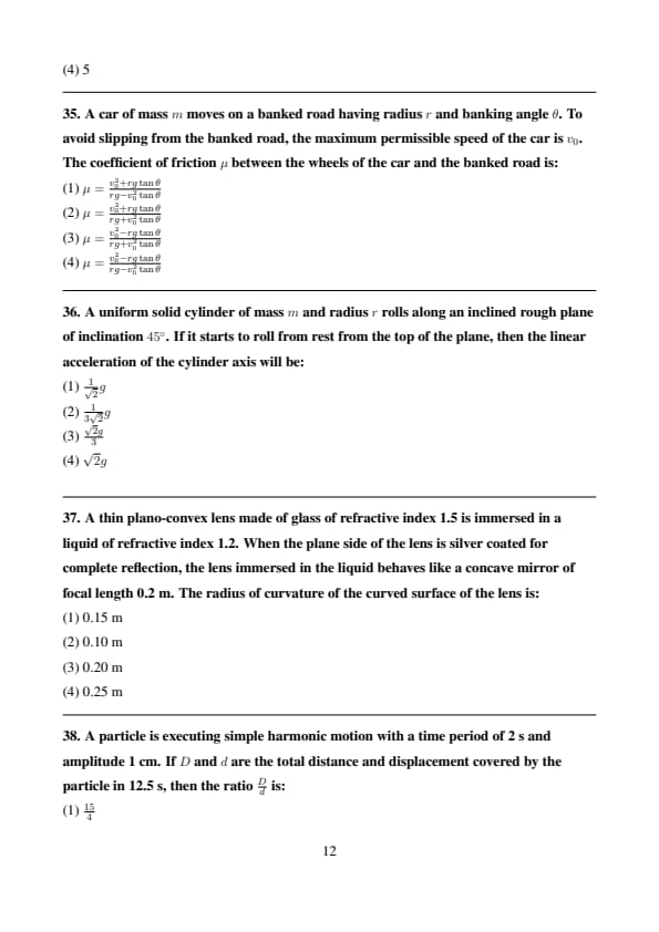 A car of mass \( m \) moves on a banked road having radius \( r \) and banking angle \( \theta \). To avoid slipping from the banked road, the maximum permissible speed of the car is \( v_0 \). The coefficient of friction \( \mu \) between the wheels of the car and the banked road is: