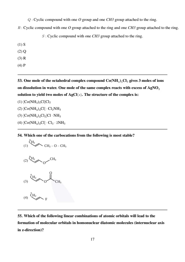 Molecules: \[ P: Cyclic compound with two O groups attached to the ring. \] \[ Q: Cyclic compound with one O group and one \textit{CH3 group attached to the ring.} \] \[ R: Cyclic compound with one O group attached to the ring and one \textit{CH3 group attached to the ring.} \] \[ S: Cyclic compound with one CH3 group attached to the ring. \]