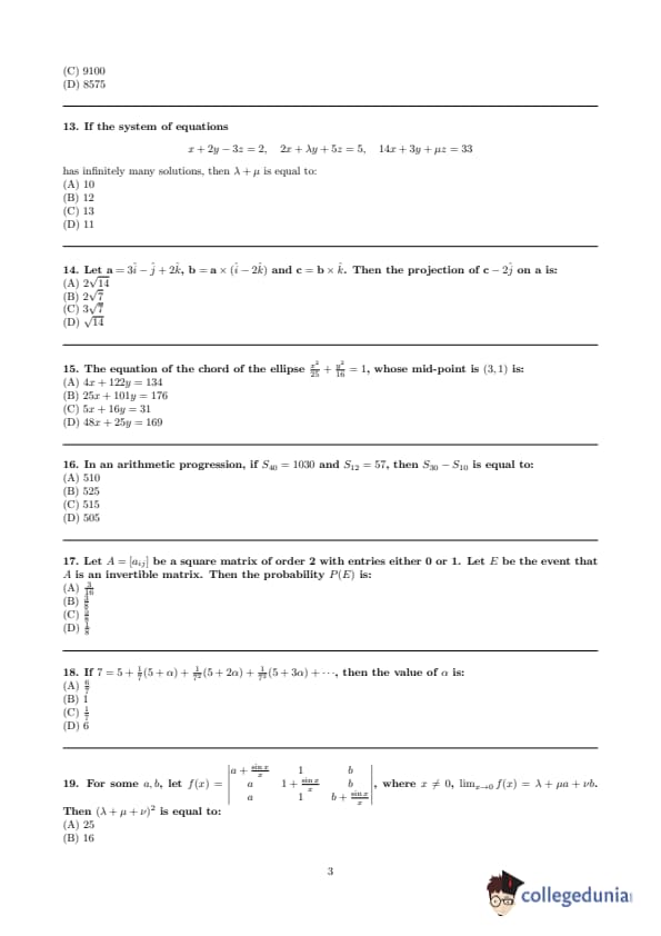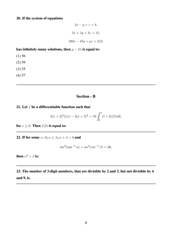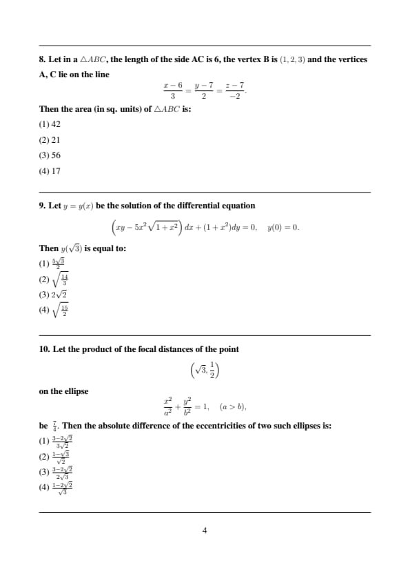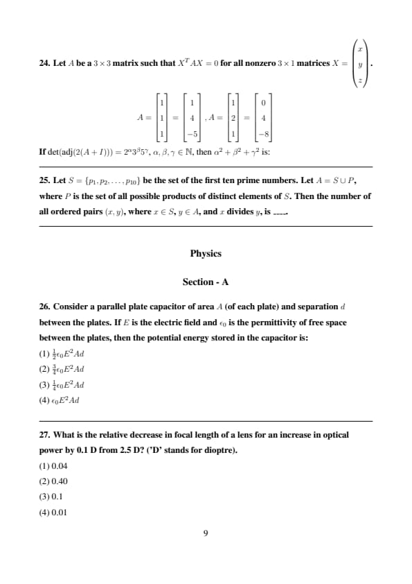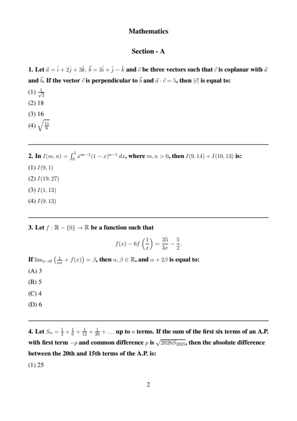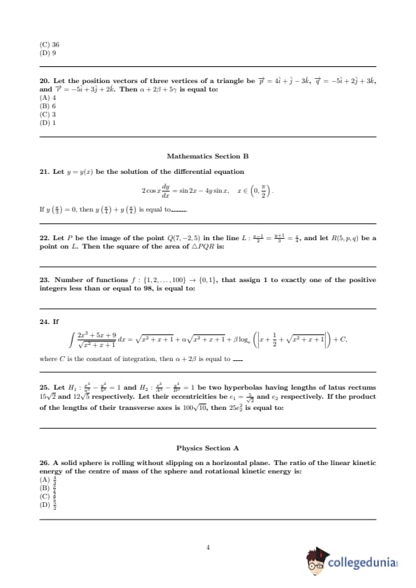 - The Mathematics section in JEE Main 2025 24th Jan Shift 1 Question Paper was Tough with 9 questions coming majorly from topics like Integration, Co-ordinate Geometry, etc.