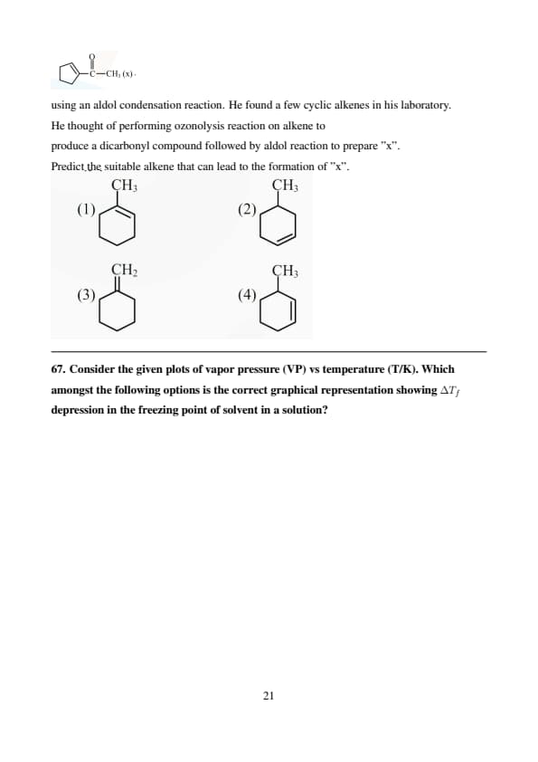 using an aldol condensation reaction. He found a few cyclic alkenes in his laboratory.