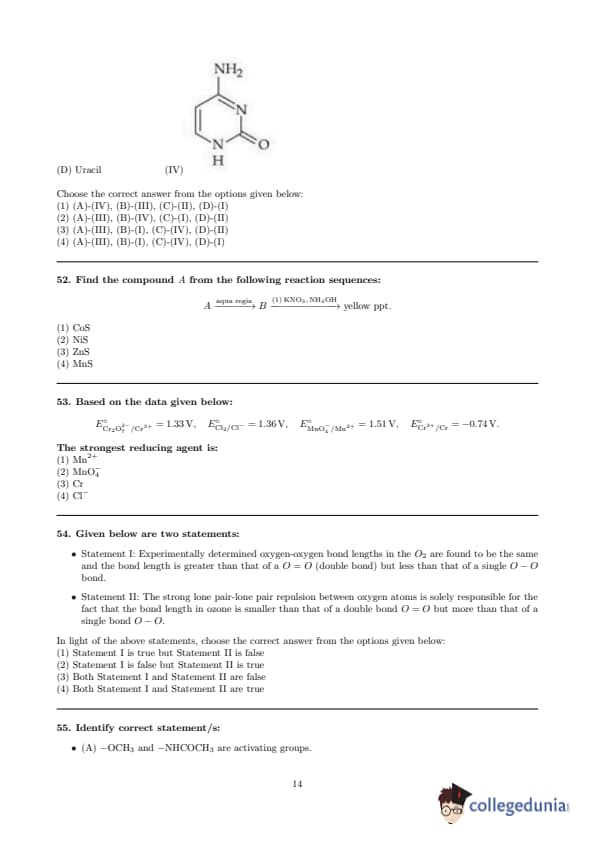 - Chemistry was Easy with 8 questions coming majorly from topics like Organic Chemistry, Physical Chemistry, etc.
