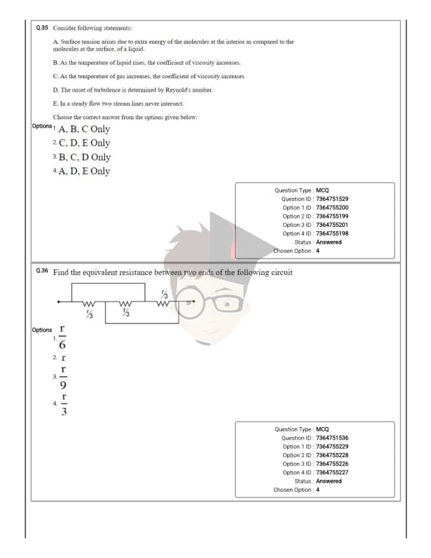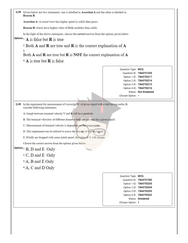 In the experiment for measurement of viscosity \( \eta \) of a given liquid with a ball having radius \( R \), consider following statements: A. Graph between terminal velocity \( V \) and \( R \) will be a parabola.