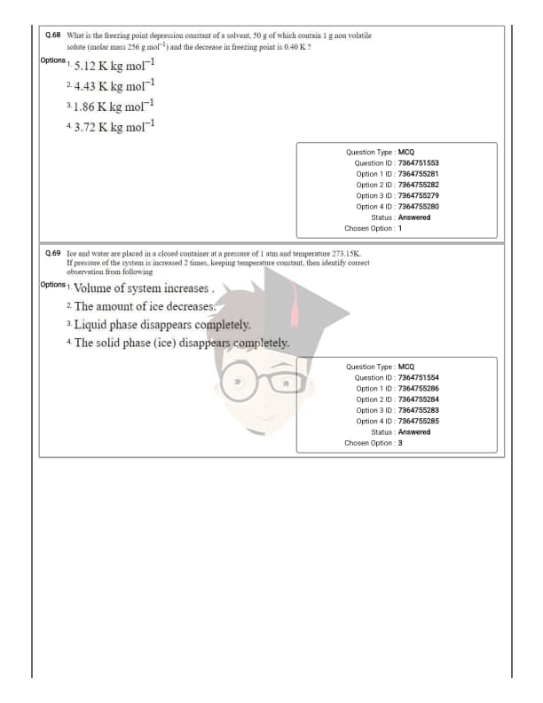 Ice and water are placed in a closed container at a pressure of 1 atm and temperature 273.15K. If pressure of the system is increased 2 times, keeping temperature constant, then identify correct observation from the following:
