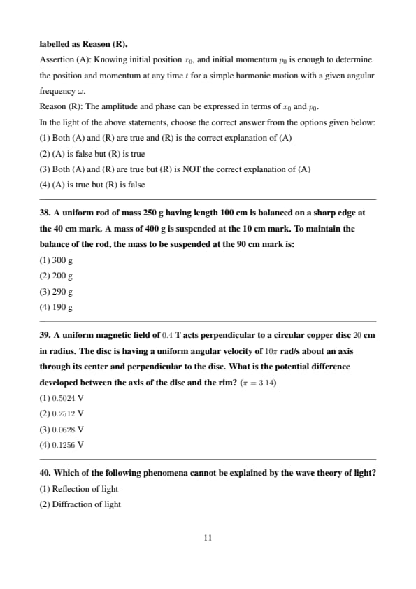 Given below are two statements. One is labelled as Assertion (A) and the other is labelled as Reason (R). Assertion (A): Knowing initial position \( x_0 \), and initial momentum \( p_0 \) is enough to determine the position and momentum at any time \( t \) for a simple harmonic motion with a given angular frequency \( \omega \).