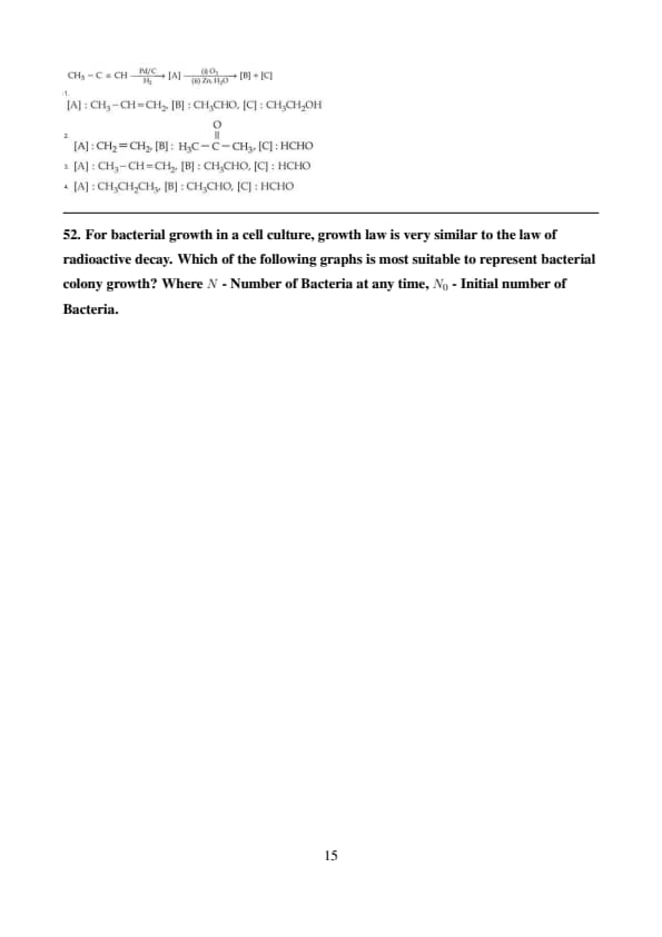 For bacterial growth in a cell culture, growth law is very similar to the law of radioactive decay. Which of the following graphs is most suitable to represent bacterial colony growth? Where \( N \) - Number of Bacteria at any time, \( N_0 \) - Initial number of Bacteria.