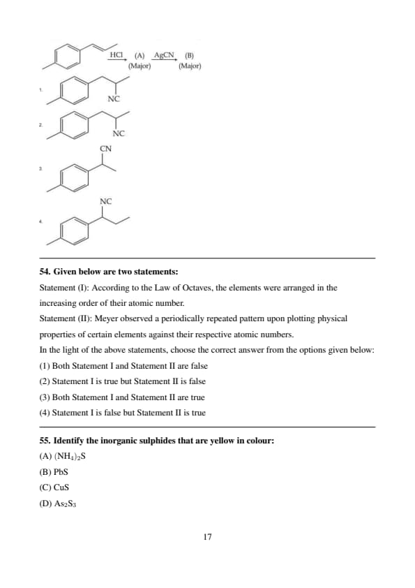 Given below are two statements: Statement (I): According to the Law of Octaves, the elements were arranged in the increasing order of their atomic number.