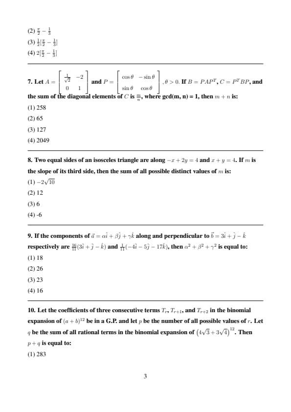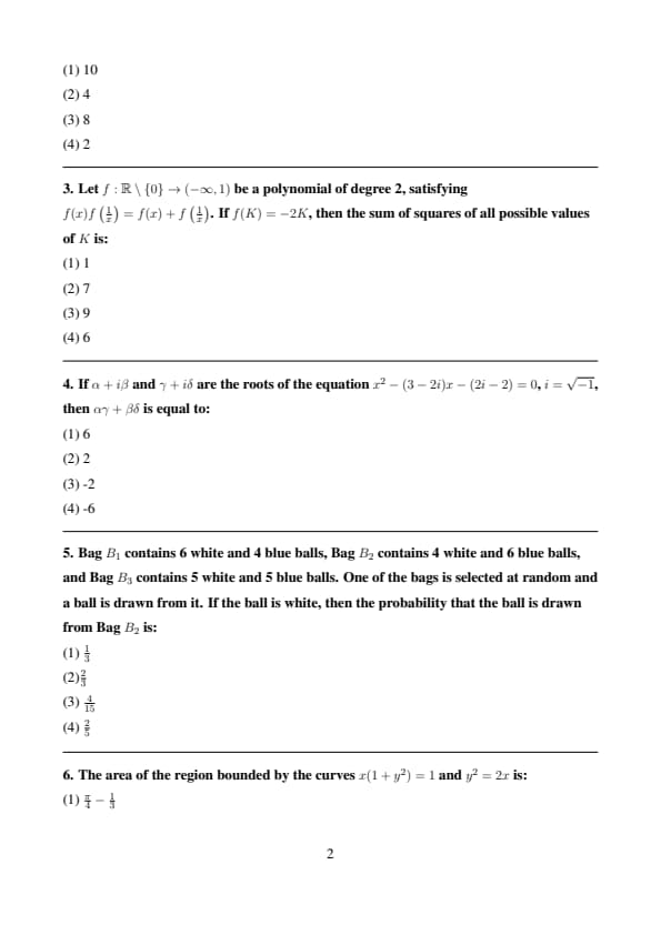 - The Mathematics section in JEE Main 2025 28th Jan Shift 2 Question Paper was Tough with 9 questions coming majorly from topics like Integration, Probability, etc.