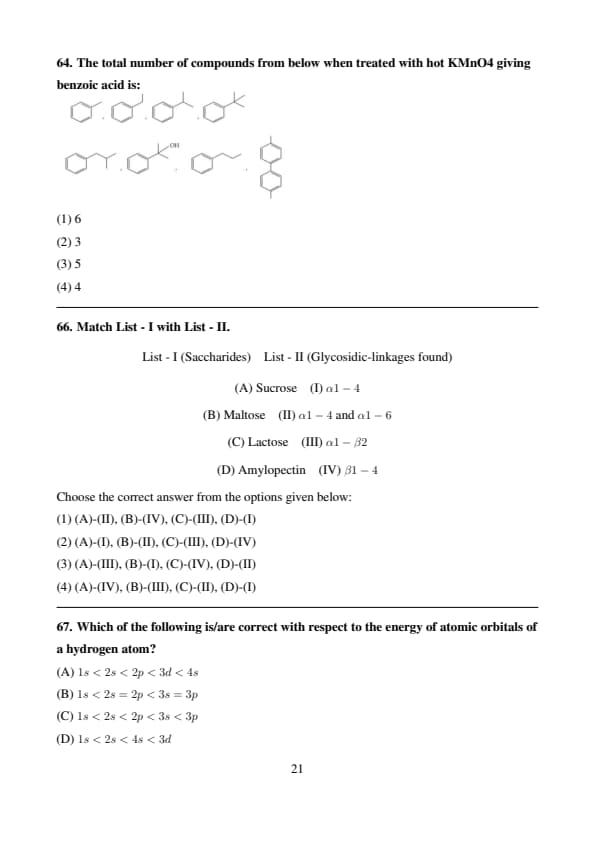 The question paper consisted of a total of 75 questions, divided equally across the three subjects: