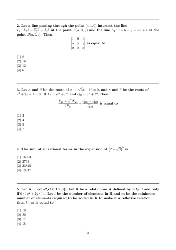 JEE Main 2025 Mathematics Questions with Solutions