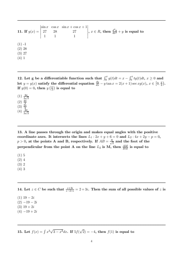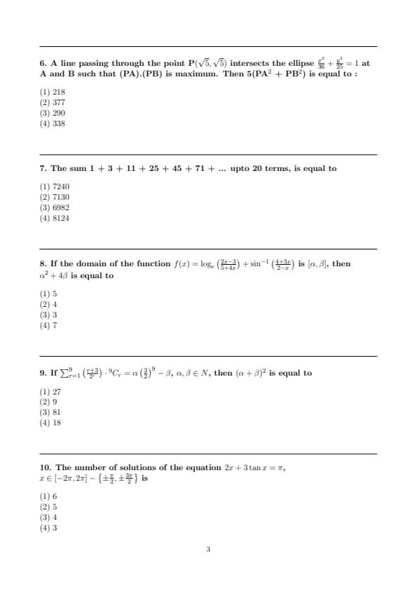 | JEE Main 2025 April 3 Shift 1 Maths Question Paper Pdf | Download PDF | View Solution |