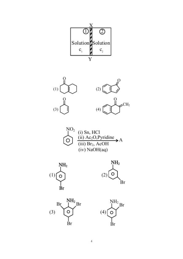 \(XY\) is the membrane / partition between two chambers 1 and 2 containing sugar solutions of concentration \(\mathrm{c}_{1}\) and \(\mathrm{c}_{2}\left(\mathrm{c}_{1}>\mathrm{c}_{2}\right) \mathrm{mol} \mathrm{L}^{-1}\). For the reverse osmosis to take place identify the correct condition