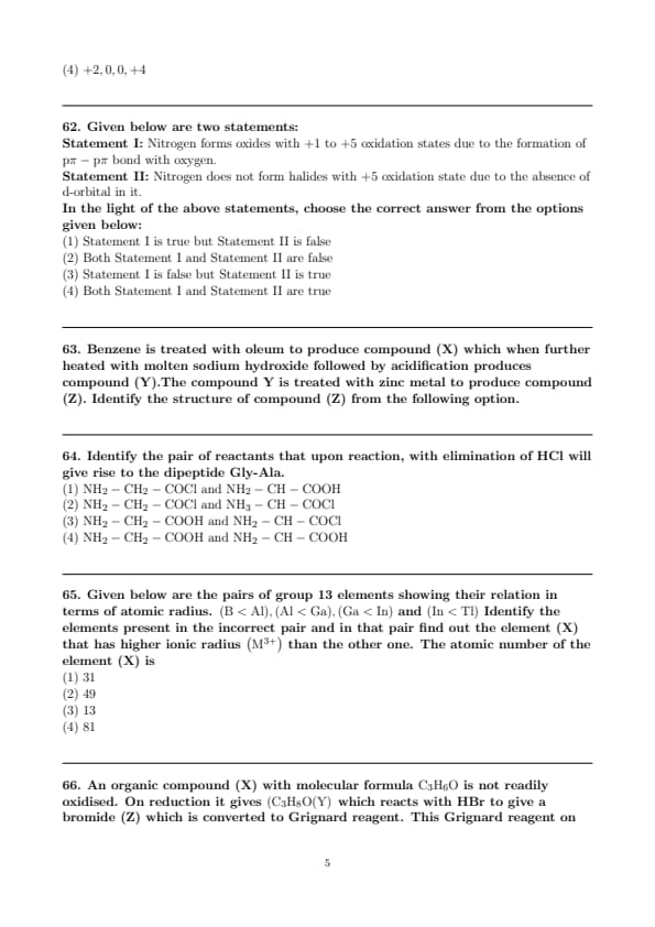 Statement I: Nitrogen forms oxides with +1 to +5 oxidation states due to the formation of \(\mathrm{p} \pi-\mathrm{p} \pi\) bond with oxygen.