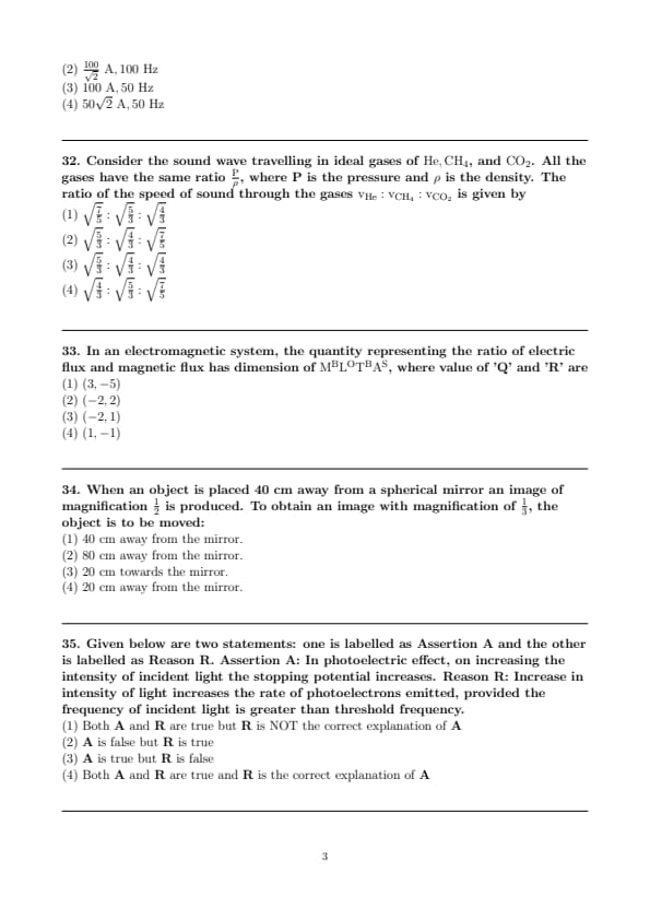 Consider the sound wave travelling in ideal gases of \(\mathrm{He}, \mathrm{CH}_{4}\), and \(\mathrm{CO}_{2}\). All the gases have the same ratio \(\frac{\mathrm{P}}{\rho}\), where P is the pressure and \(\rho\) is the density. The ratio of the speed of sound through the gases \(\mathrm{v}_{\mathrm{He}}: \mathrm{v}_{\mathrm{CH}_{4}}: \mathrm{v}_{\mathrm{CO}_{2}}\) is given by