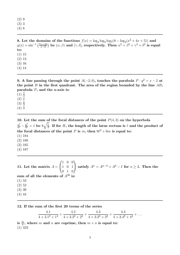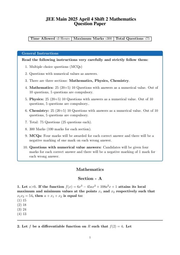 | JEE Main 2025 April 3 Shift 2 Maths Question Paper Pdf | Download PDF | View Solution |
