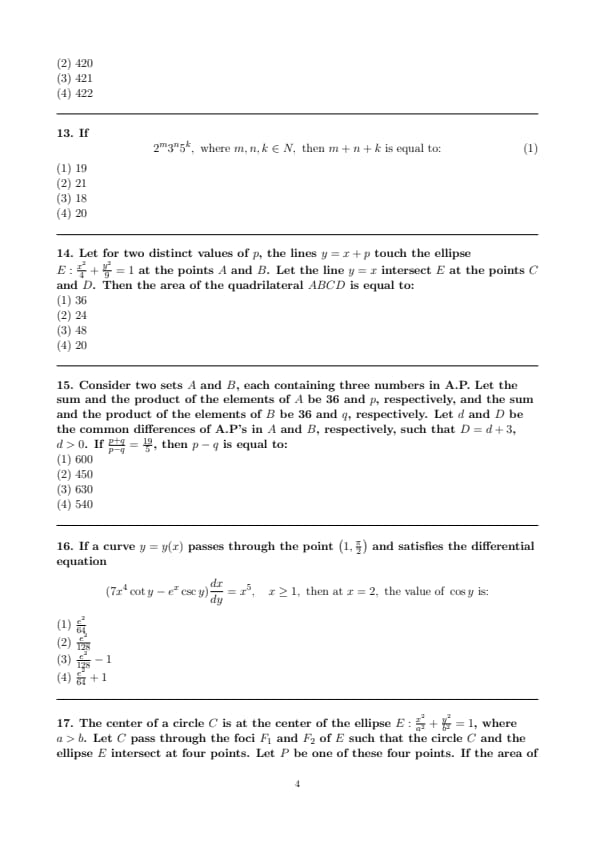 JEE Main 2025 April 4 Shift 2 Maths Question Paper with Solutions