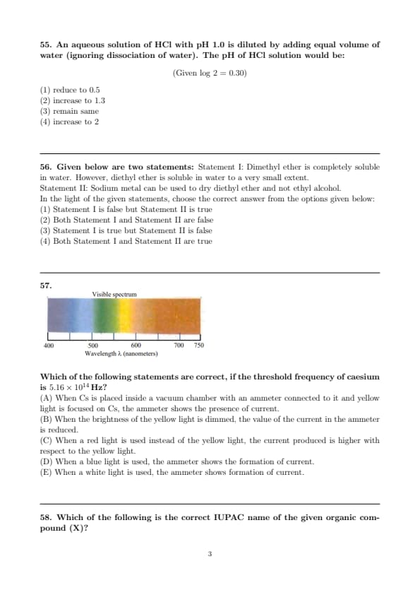 An aqueous solution of HCl with pH 1.0 is diluted by adding equal volume of water (ignoring dissociation of water). The pH of HCl solution would be: \[ (Given log 2 = 0.30) \]