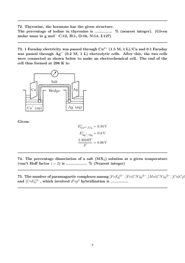 (Given molar mass in g mol\(^-\) C:12, H:1, O:16, N:14, I:127)
