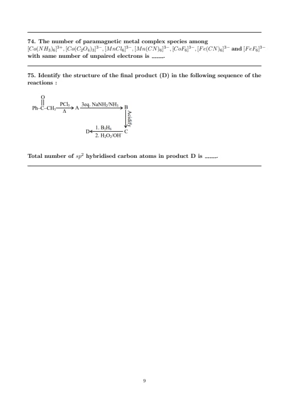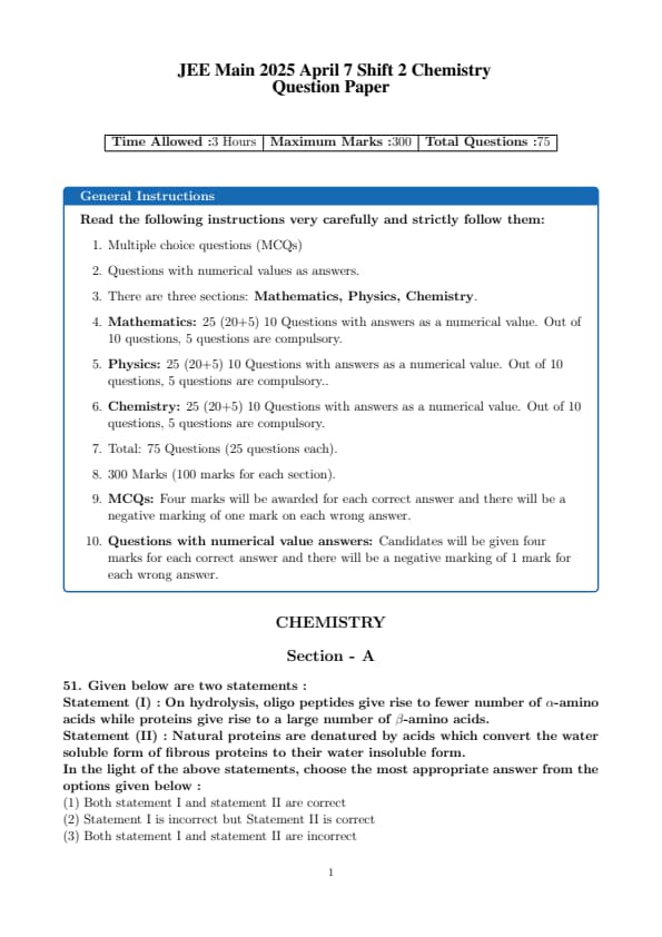 | JEE Main 2025 April 7 Shift 2 Chemistry Question Paper Pdf | Download PDF | View Solution |