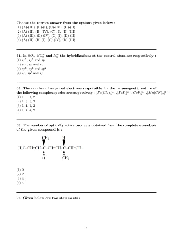 In \( SO_2 \), \( NO_2^- \) and \( N_3^- \) the hybridizations at the central atom are respectively :