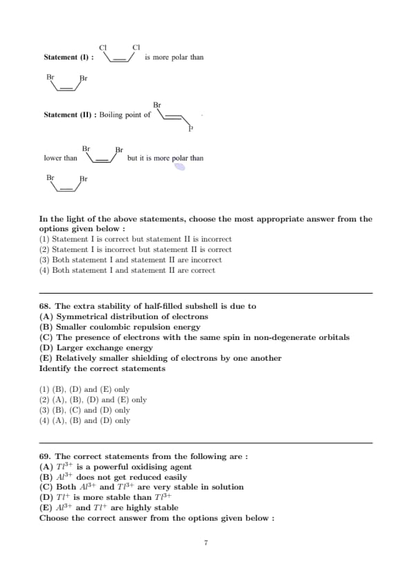 In the light of the above statements, choose the most appropriate answer from the options given below :
