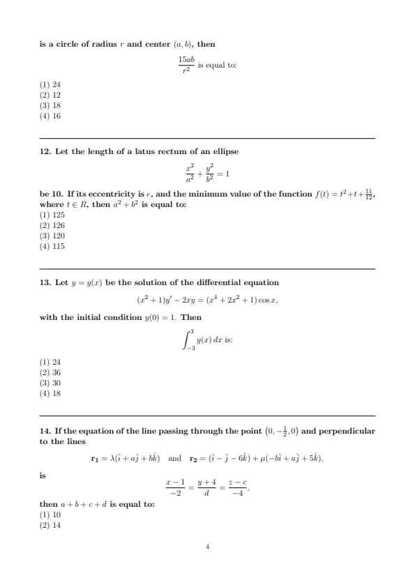 is a circle of radius \( r \) and center \( (a, b) \), then \[ \frac{15ab}{r^2} is equal to: \]