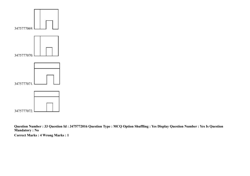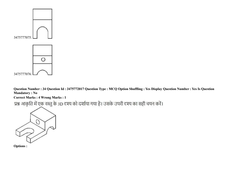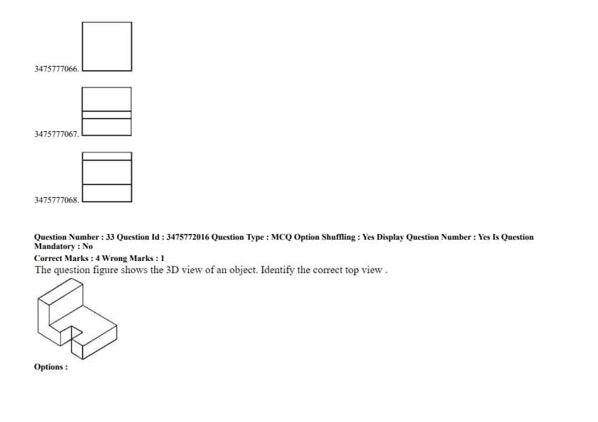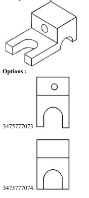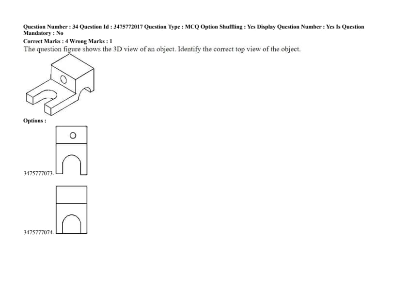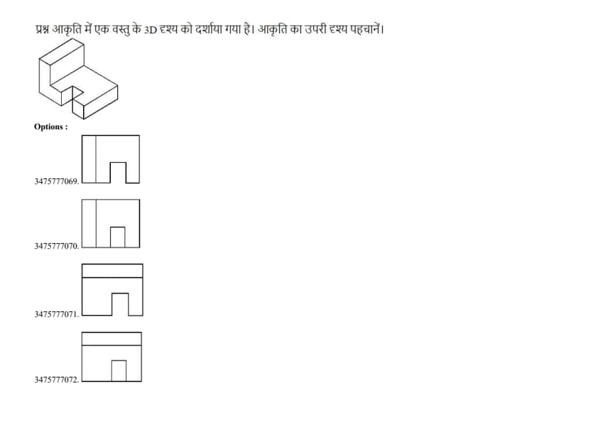 The question figure shows the 3D view of an object. Identify the correct top view of the object.
